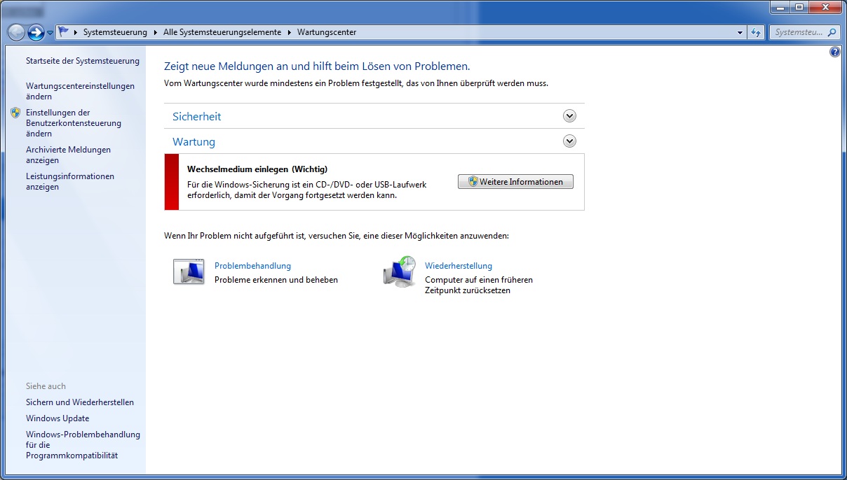 bei PC problemen kommt die ganze zeit wechelmedium einlegen.