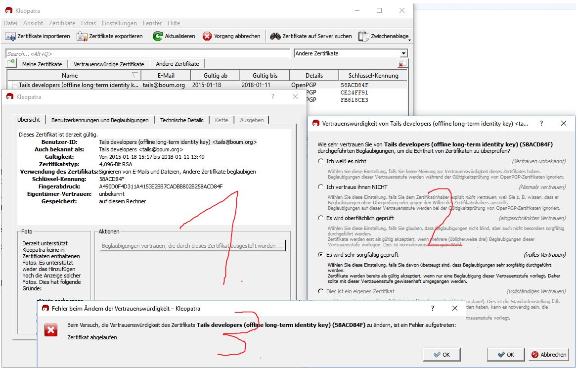 Dabei sind alle Zertifikate, meine und die von Tails, noch gültig.