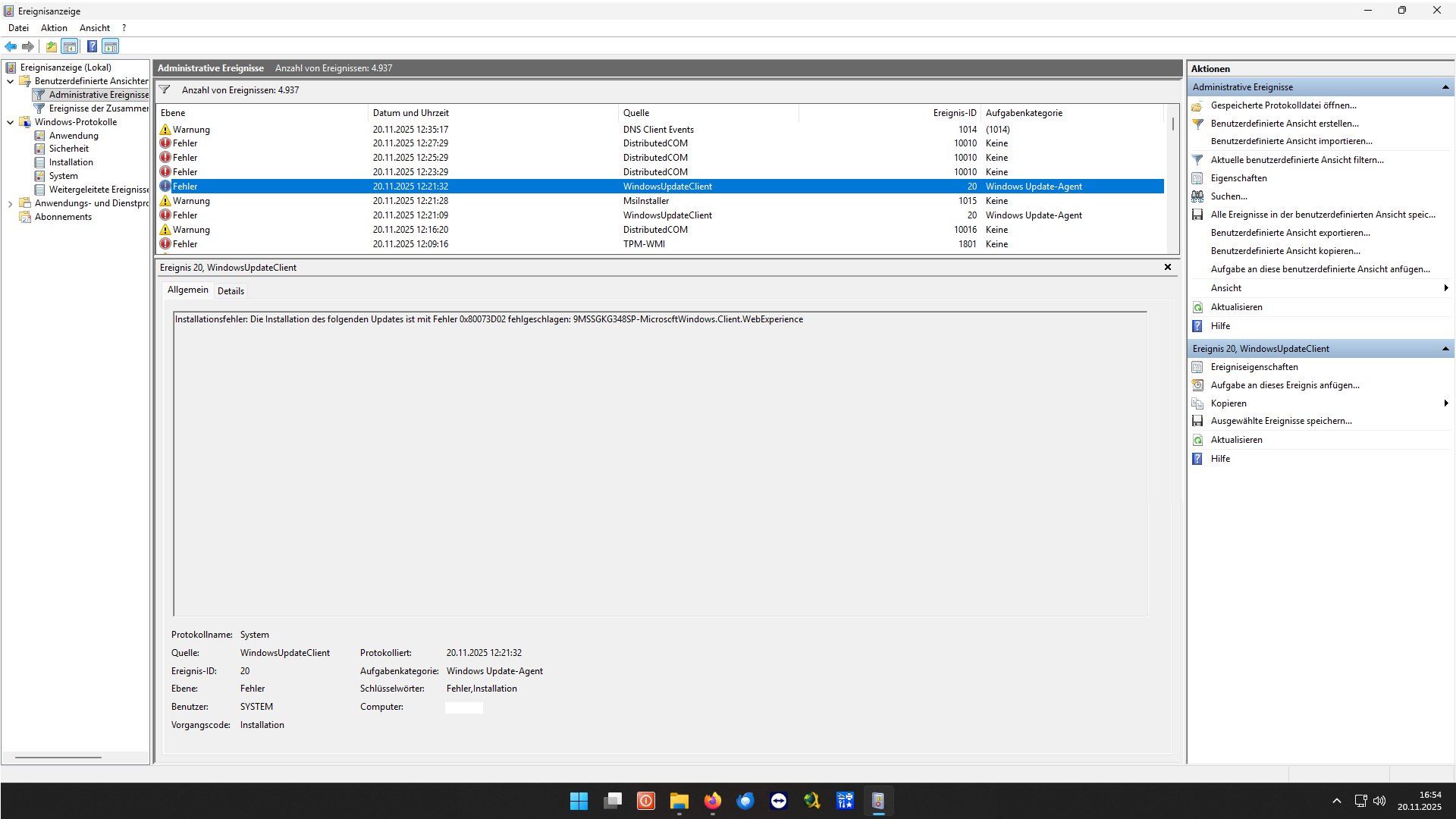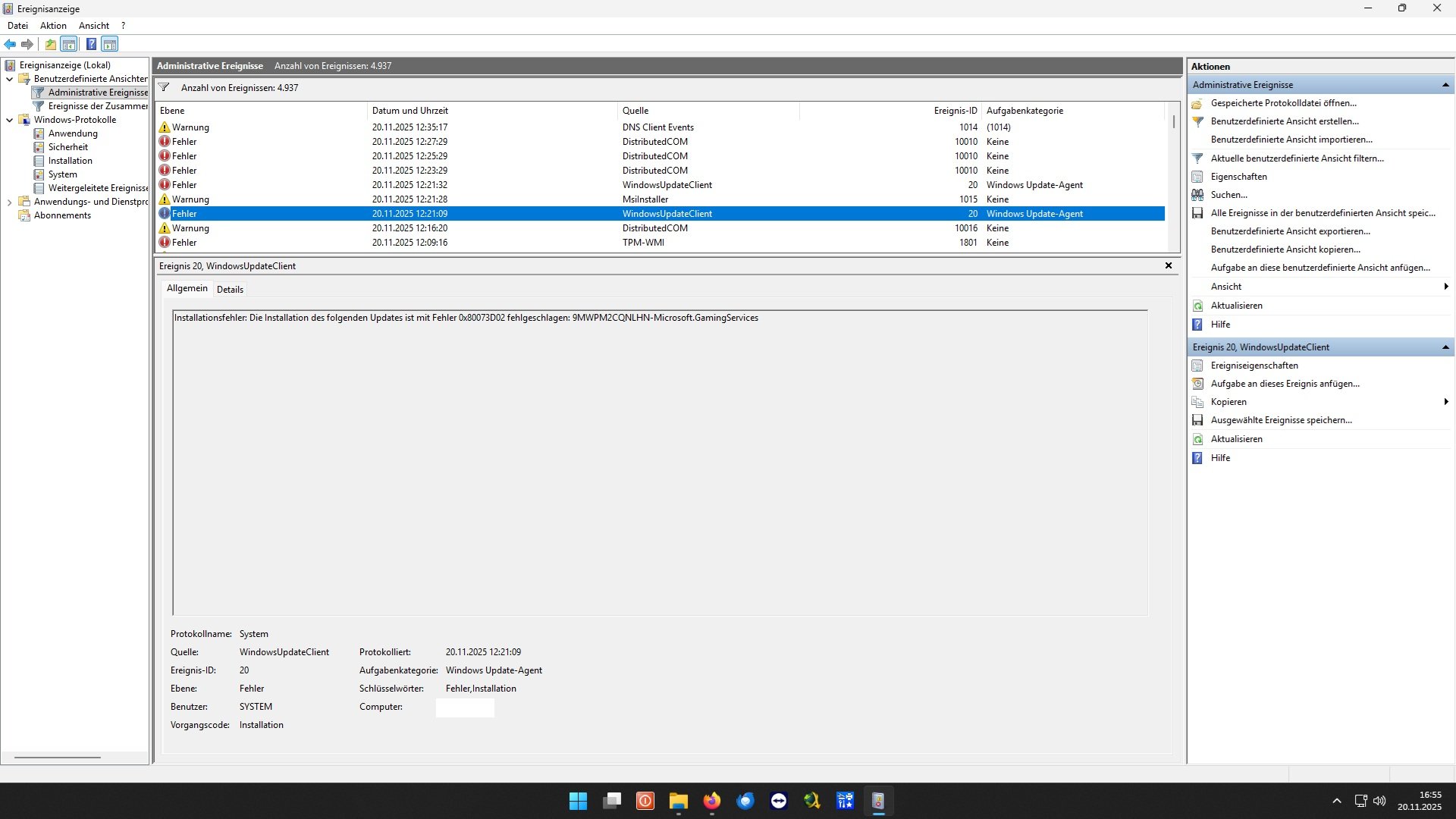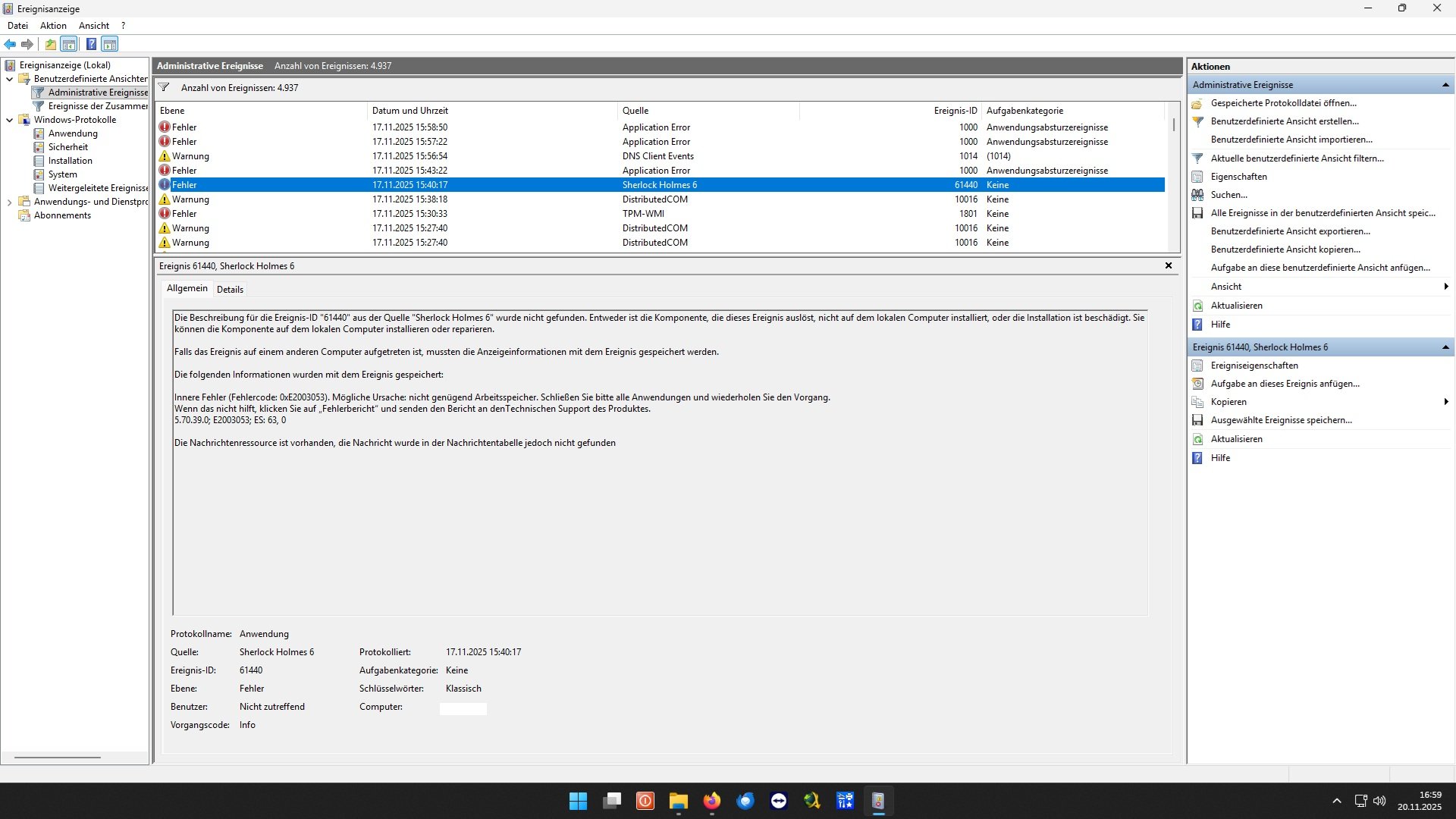 Hilfe bei Behebung von Fehler und Warnungen in der Ereignissanzeige