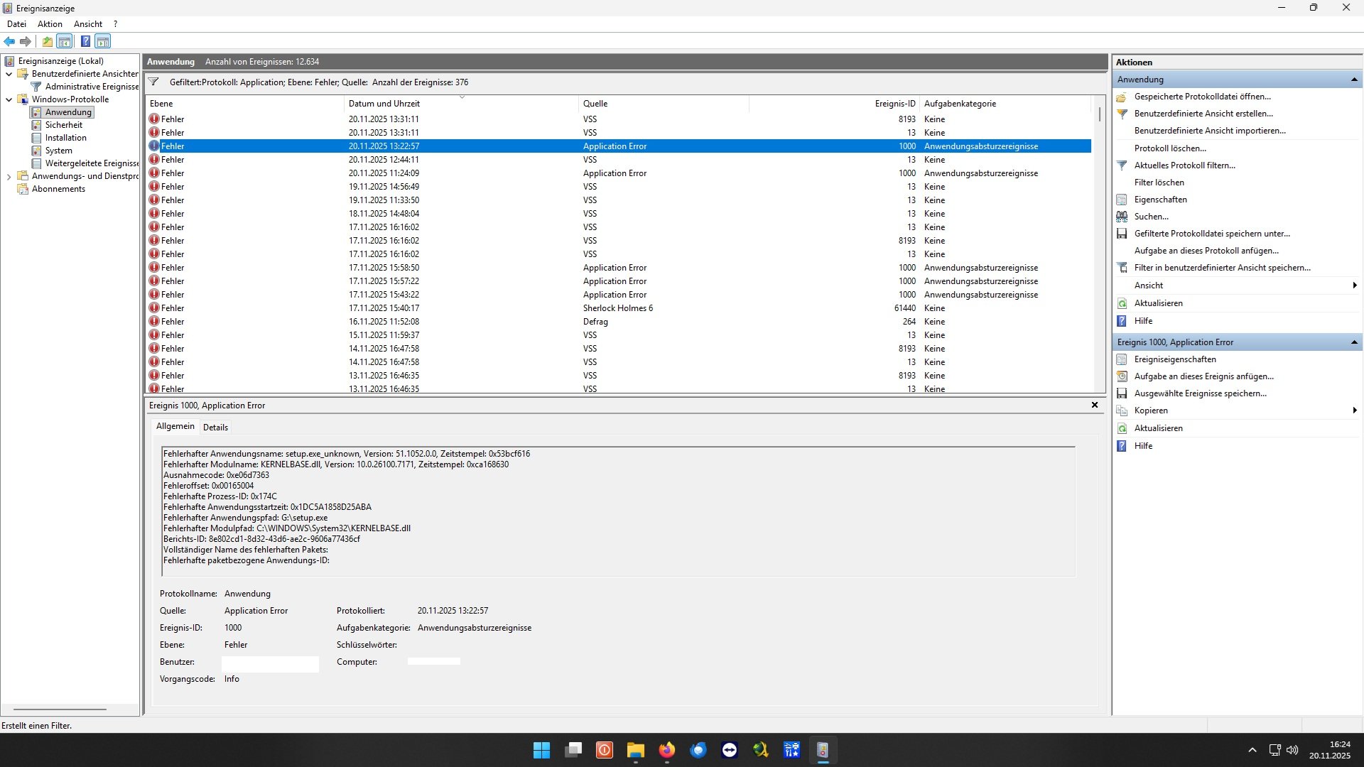 Ich habe die SSD Gescannt und keine fehler gefunden, ebenso die RAM.