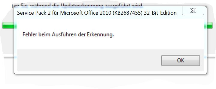 Ich habe beim folgenden Update (Service Pack 2 für Microsoft Office 2010 (KB2687455) 32-Bit-Edition) einen Fehler bzw. komme nicht weiter bei der Installation was soll ich machen ?