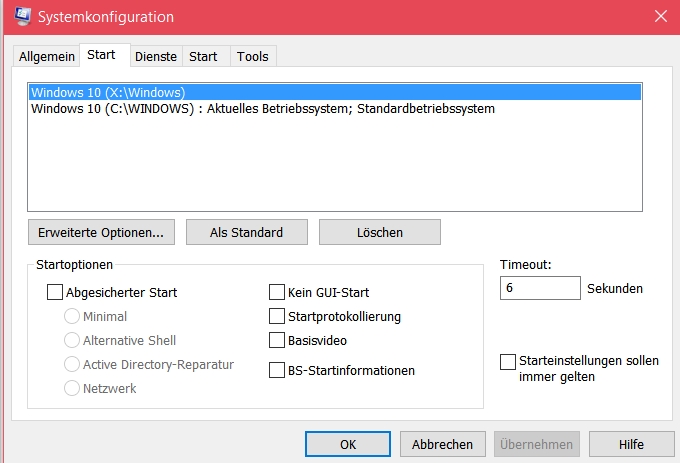 Ich habe mehrere Betriebssysteme auf unterschiedlichen Festplatten installiert. Beim Starten werden mir diese zur Auswahl angezeigt. Jetzt habe ich mir eingebildet, dass ich die Reihenfolge dieser Anzeige ändern müsste und konnte dies mit dem Tool EasyBCD auch erledigen. Nun bin ich mir leider nicht mehr sicher, was ich sonst noch getan habe. Seit dieser Änderung werden mir nun insgesamt 21 Startoptionen angezeigt.