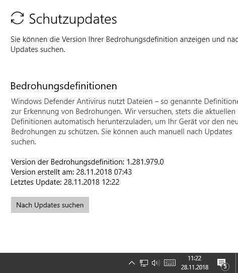 Ich weiß nicht woran es liegt aber ich habe eine Fehlerhafte Updatezeit im Windows Defender: