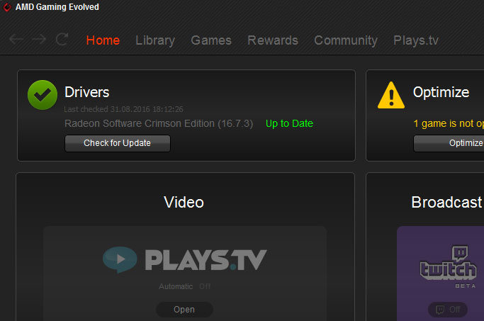 Wenn ich allerdings das eben installierte Raptr öffne, sieht es wieder so aus, als wäre der aktuelle AMD-Grafiktreiber installiert (siehe nächster Screenshot)