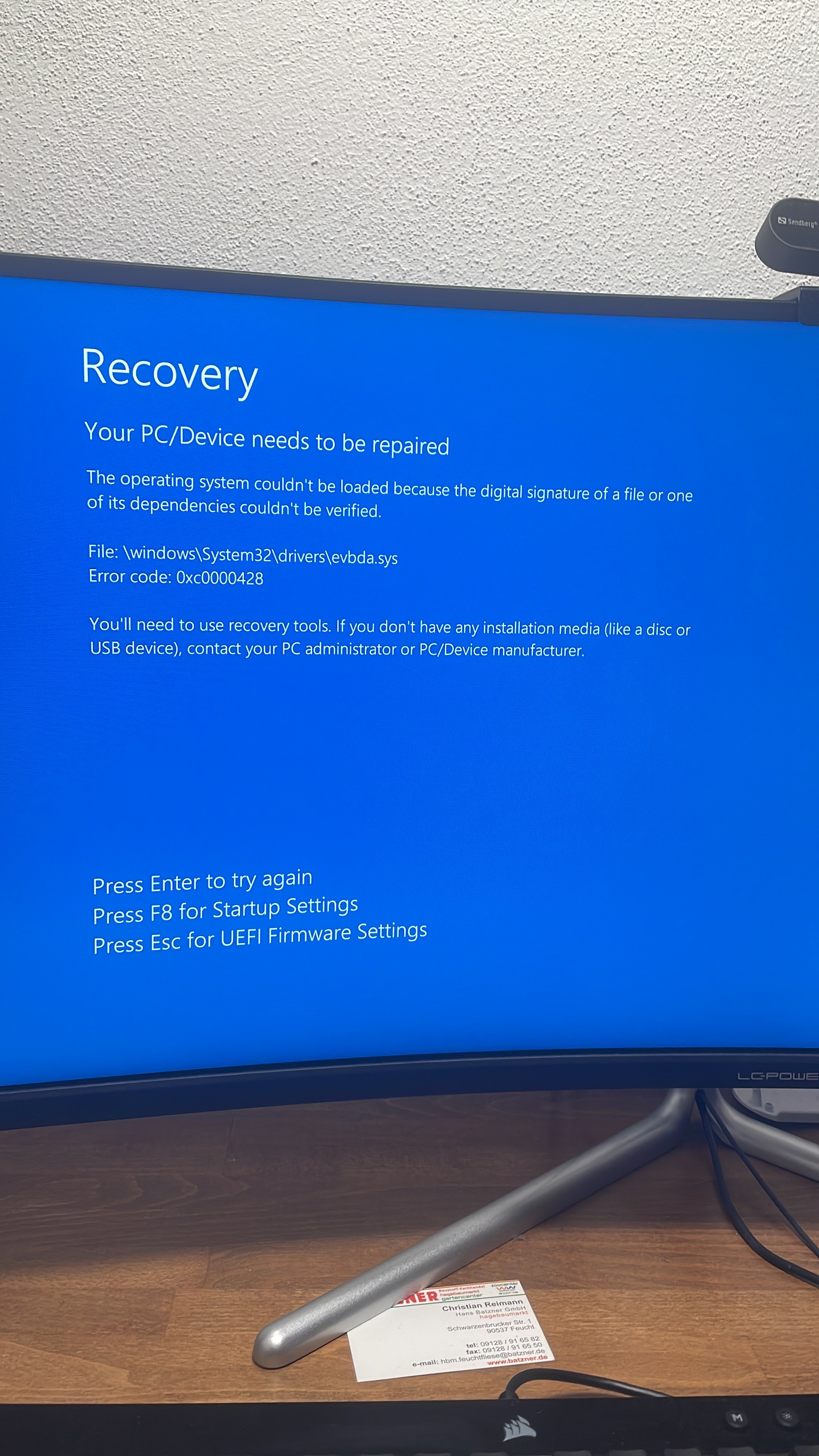 Bin mir ziemlich sicher das ich alle Stecker richtig habe. Hab nen USB Stick mit Windows 10 probiert er hat lange versucht zu Booten zum Schluss kam diese Meldung wieder siehe Bild. Diese Fehlermeldung mit Error 0000428 Recovery wurde diesmal nicht angezeigt. Kann das am Stick liegen da es kein USB 3 ist sondern USB 1?
