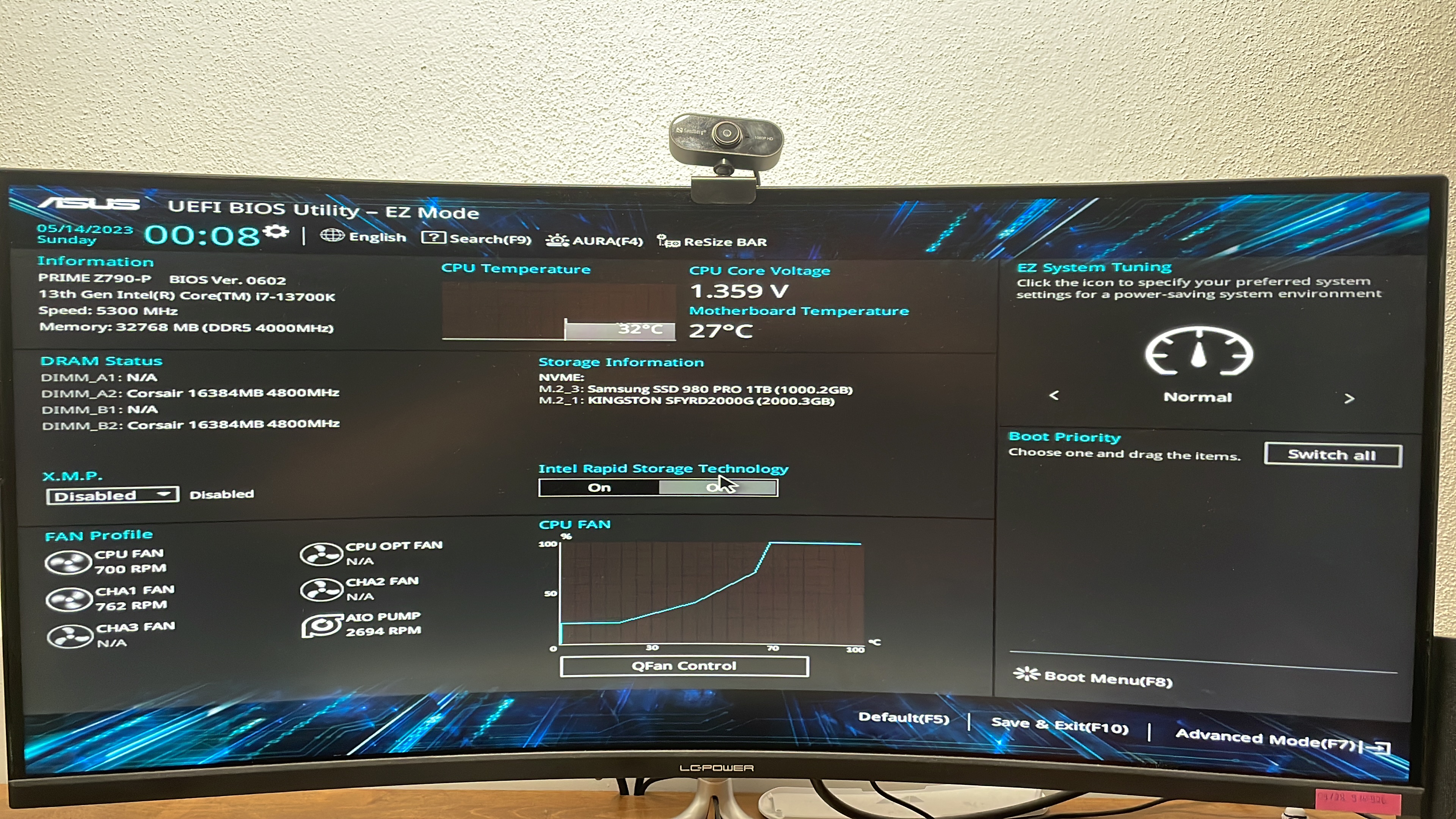 Verbaut sind: i7 13700K, RTX 4070ti, Asus Prime Z790-p Board, silent Loop2 Kühlung, M2 kingston Renegade 2tb, Samsung 980 Pro 1tb Festplatten, Vengeance DDR 5 32 Gb Corsair Arbeitsspeicher und 850 w bquiet Gold Netzteil und ein dark Base 700