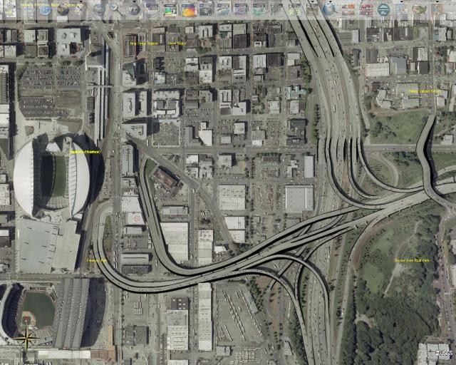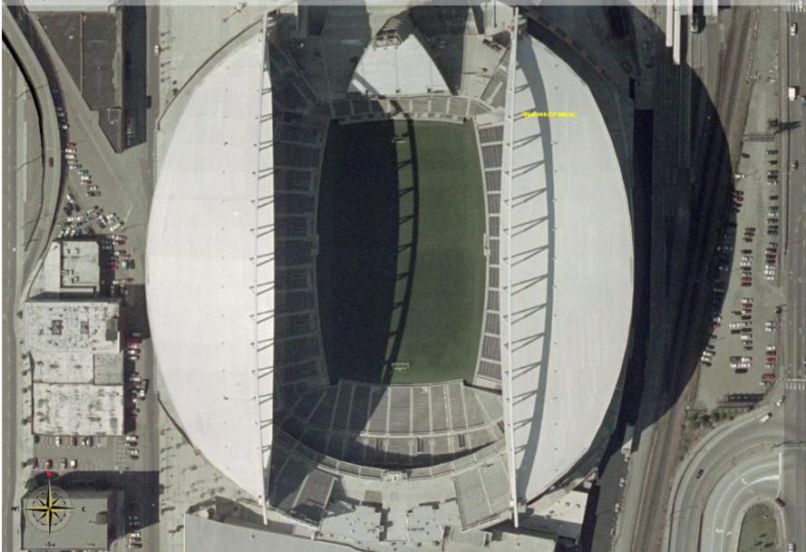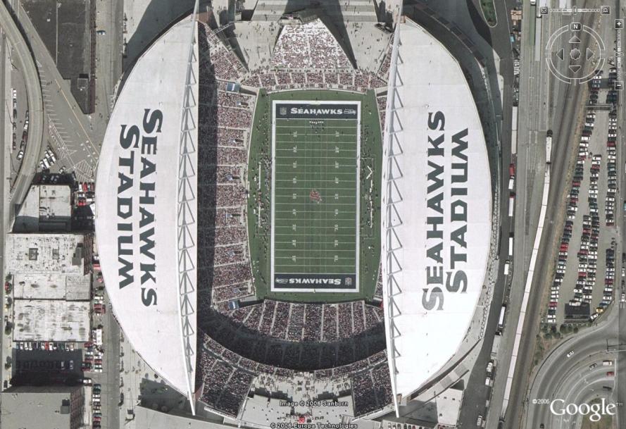 Aber auch nach 5 Minuten warten erkennt man nicht annähernd das, was Google bietet. Beispiel Footballstadion in Seattle (die Stadt sollte in WW in Bildern mit höchster Auflösung vorliegen). Bei GE erkennt man einzelne Menschen, bei WW kann man grad mal erahnen, dass das überhaupt ein Stadion sein soll (okay, ganz so schlecht isses nicht; war der falsche Satellit eingestellt )