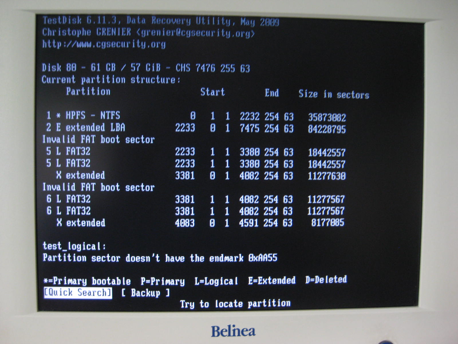 Also die Fehlermeldung lautete "Error 1500 Bad boot signature byte".