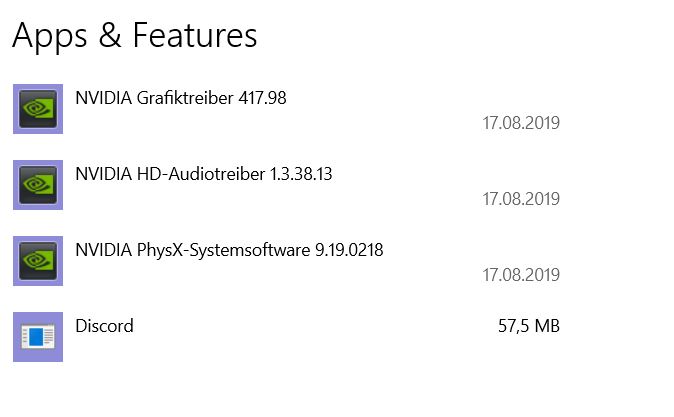 Bei den Programmen lässt sich Discord aber nicht entfernen. Ich habe keine Ahnung ob das nun das "normale" Discord ist was ich als erstes runtergeladen hab, oder diese Desktop App, hatte noch nie Discord.