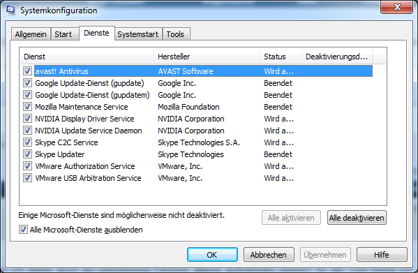 Jetzt kommt aber Neustart nach jedem die Meldung: