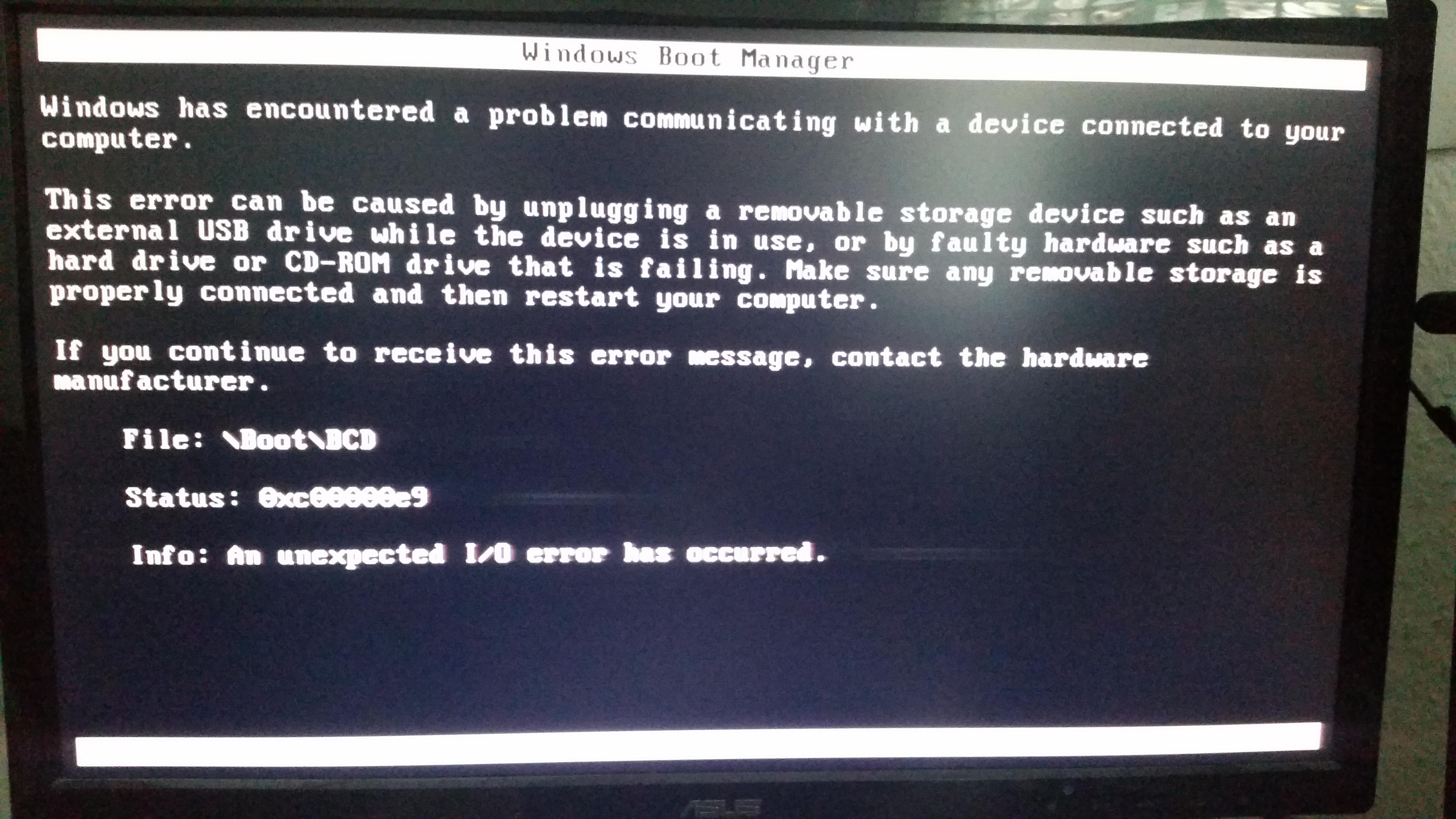 USB oder Externe Platte angeschlossen,wo ein BS drauf ist.Evt. auch den Bootsektor zerschossen von der normalen HDD bzw.SSD.