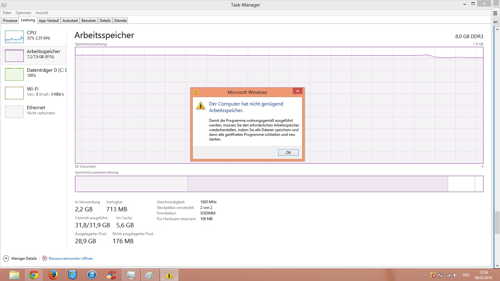 Erstaunlicherweise ist es immer Windows 8 mit den Memory Leaks , den vollgelaufenen Speichern.