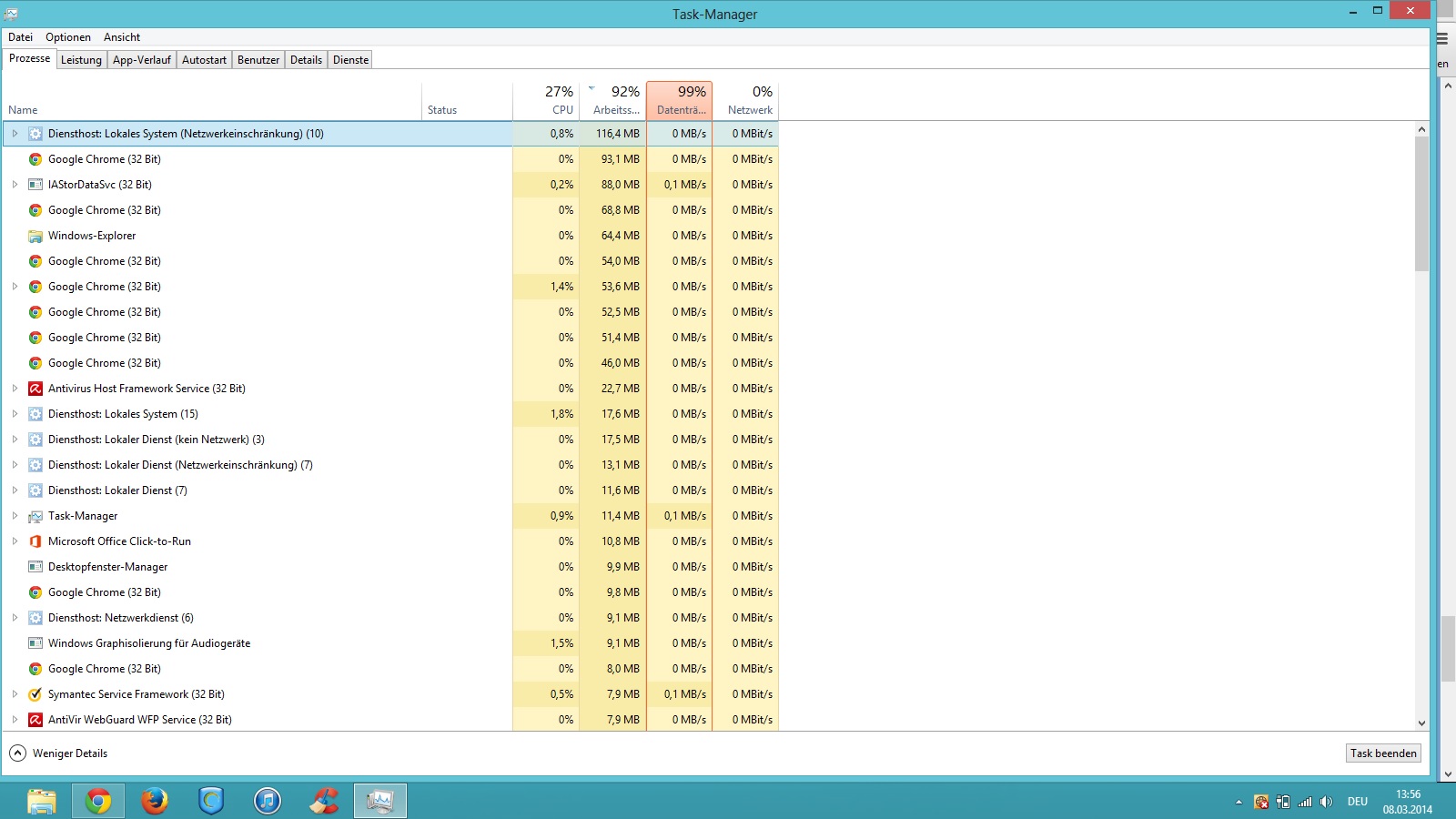 Hat du 2 Virenscanner installiert,weil in deinem Bild vom Taskmanager Avira