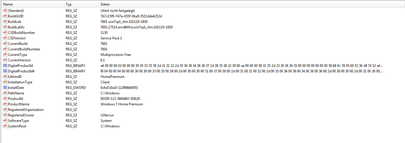 danke für den tipp. mit eigenen kenntnissen würde ich das nicht verstehn aber google sprachtools hilft weiter Ich bin jetzt auf CurrentVersion draufgegangen aber ich glaube da sieht alles ganz gut aus, da muss man nichts verändern. ich hab davon ein bild gemacht.