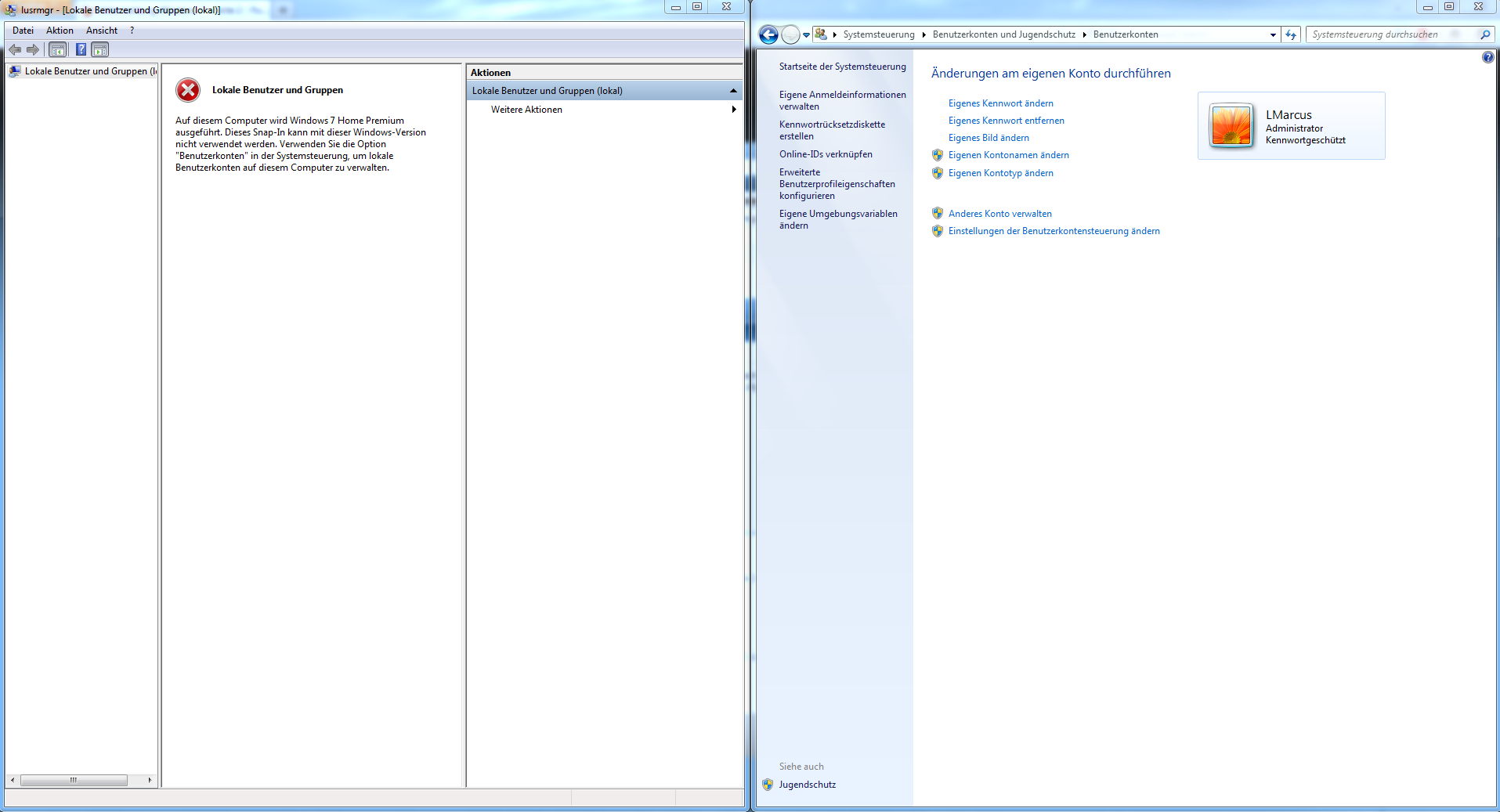 Genau, lusrmgr das ist das User Management für die MMC (Microsoft Management Console). Dort in deinen Benutzer gehen und überprüfen ob dein Profil einen Pfad.