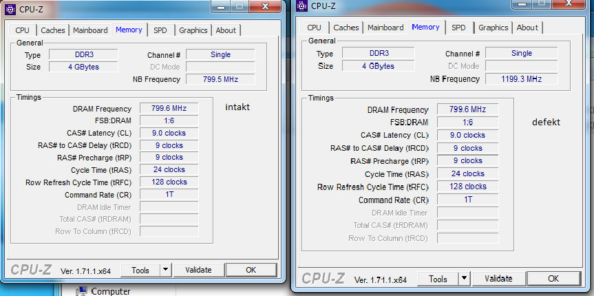 3.: Beim Einbau bin ich kurz mit dem Schrauber übers MB gestrichen, gab nur einen oberflächlichen Kratzer im Lack und das MB läuft einwandfrei. Wenn man die Speicherbank (A1 A2 B1 B2) im Osten lokalisieren würde, wäre der Kratzer im Nordwesten gewesen, also ziemlich weit weg. Die Riegel habe ich mit Memtest getestet. Die Riegel waren in A2 und B2, der defekte im Ersteren. Ich habe den intakten sowohl ich A2 und B2 getestet und bisher keine Fehlermeldung erhalten, wohingegen ich mit dem defekten nicht mal vernünftig Booten konnte.