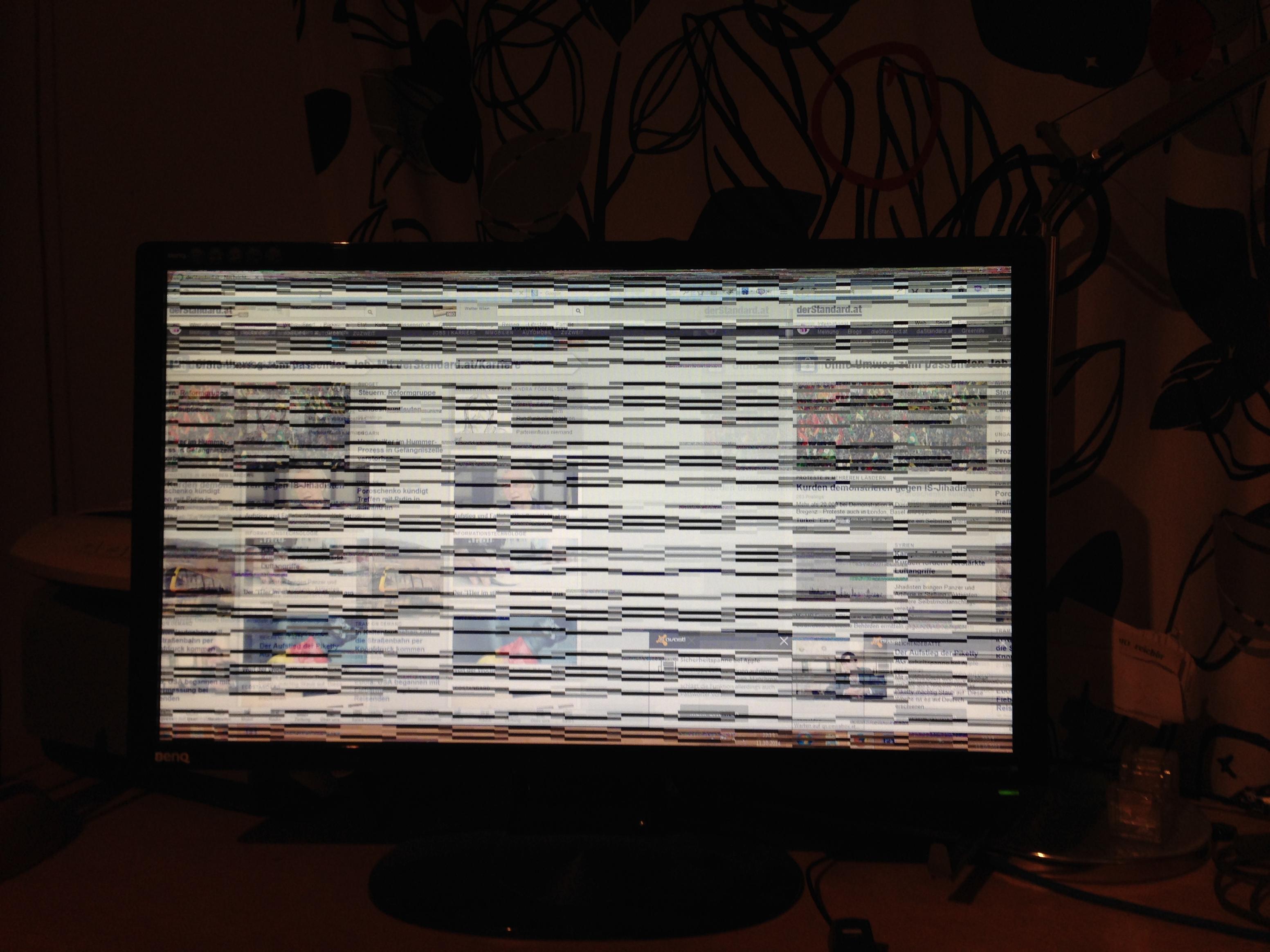 Es kommt immer wieder zu einem Hänger mit Bildfehler (siehe Bild), der PC lässt sich dann nur mehr durch Resettaste oder Powertaste ausschalten bzw. neu starten.