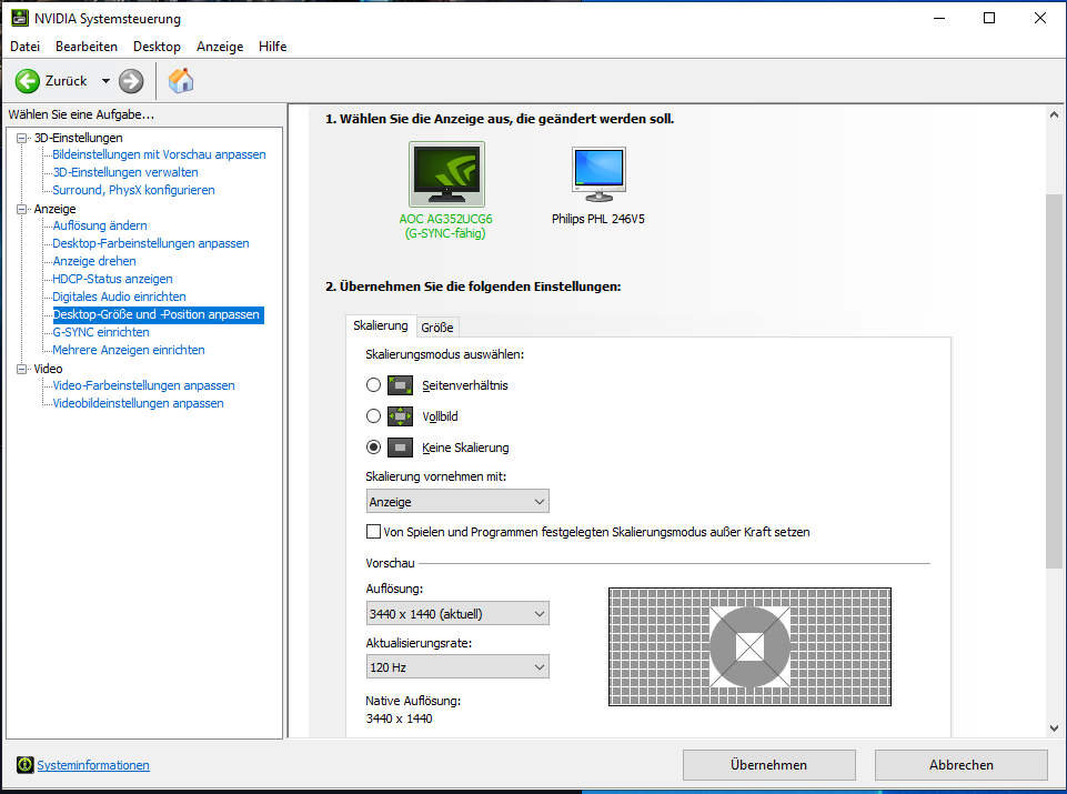 Wenn ich unter die Grafikeinstellungen gehe gibt es bei der Auflösung keine Optionsmöglichkeit für mich (anbei noch ein Screenshot)