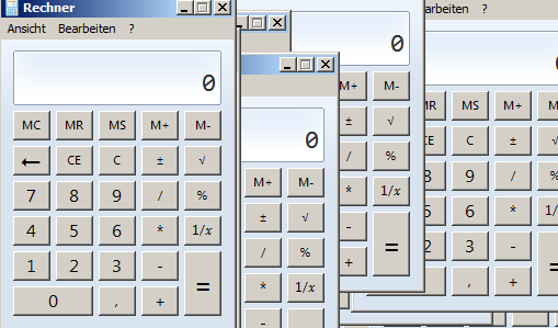 Sobald sich ein Fenster über einem schon geöffneten Fenster startet, wird der Inhalt von dem neuen Fenster im schon geöffneten Fenster übernommen. Dadurch sehe ich dann teilweise das alte und teilweise das neue Fenster.