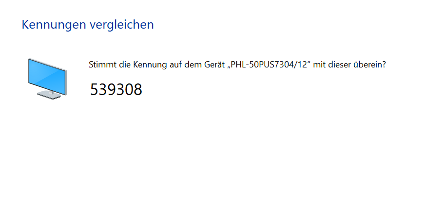 Beim Versuchen als Gerät hinzuzufügen, wird mir eine Zahl gezeigt, die aber nicht am TV erscheint. Und wird natürlich abgelehnt.