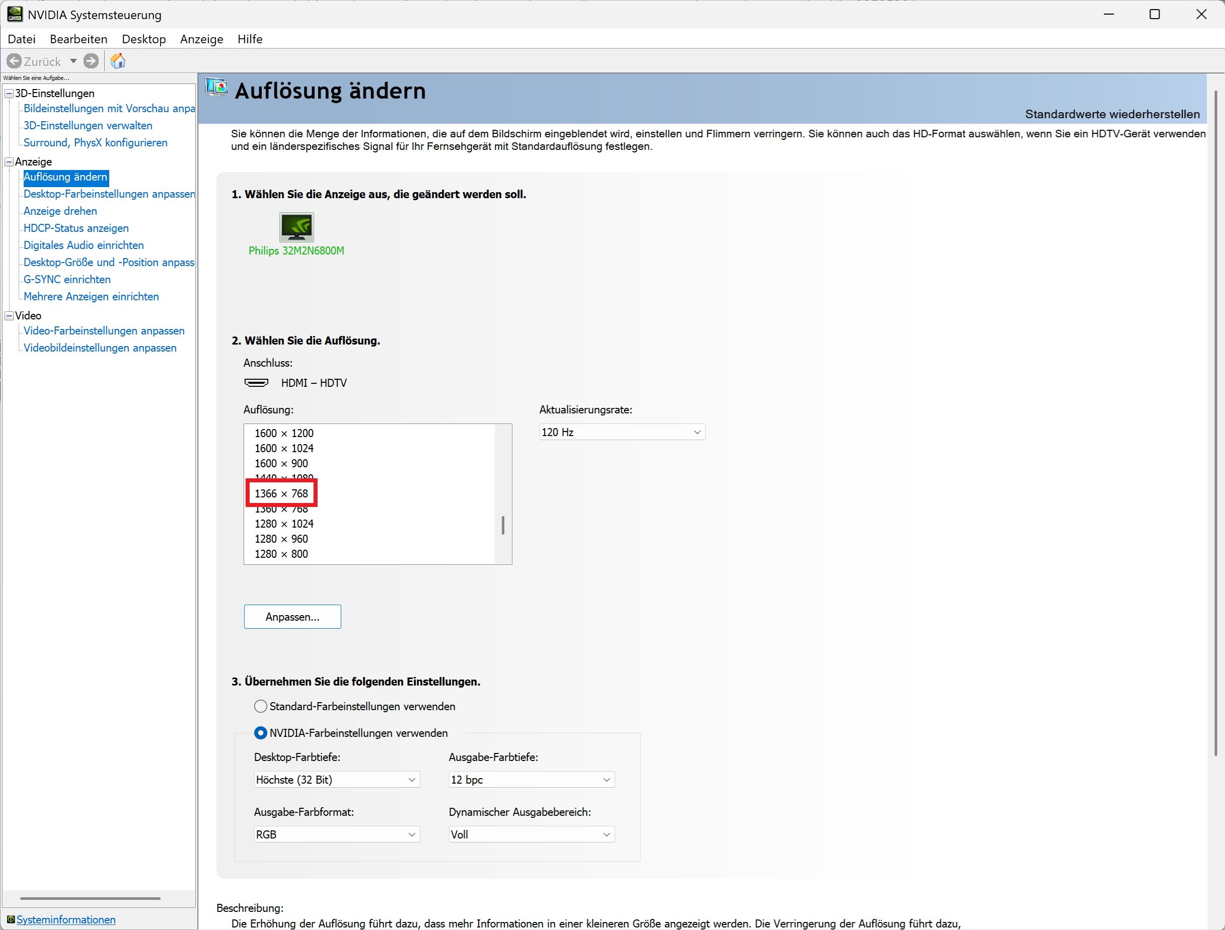 Es handelt sich dabei um einen 32" 1366x768 mit 60 Hz .
