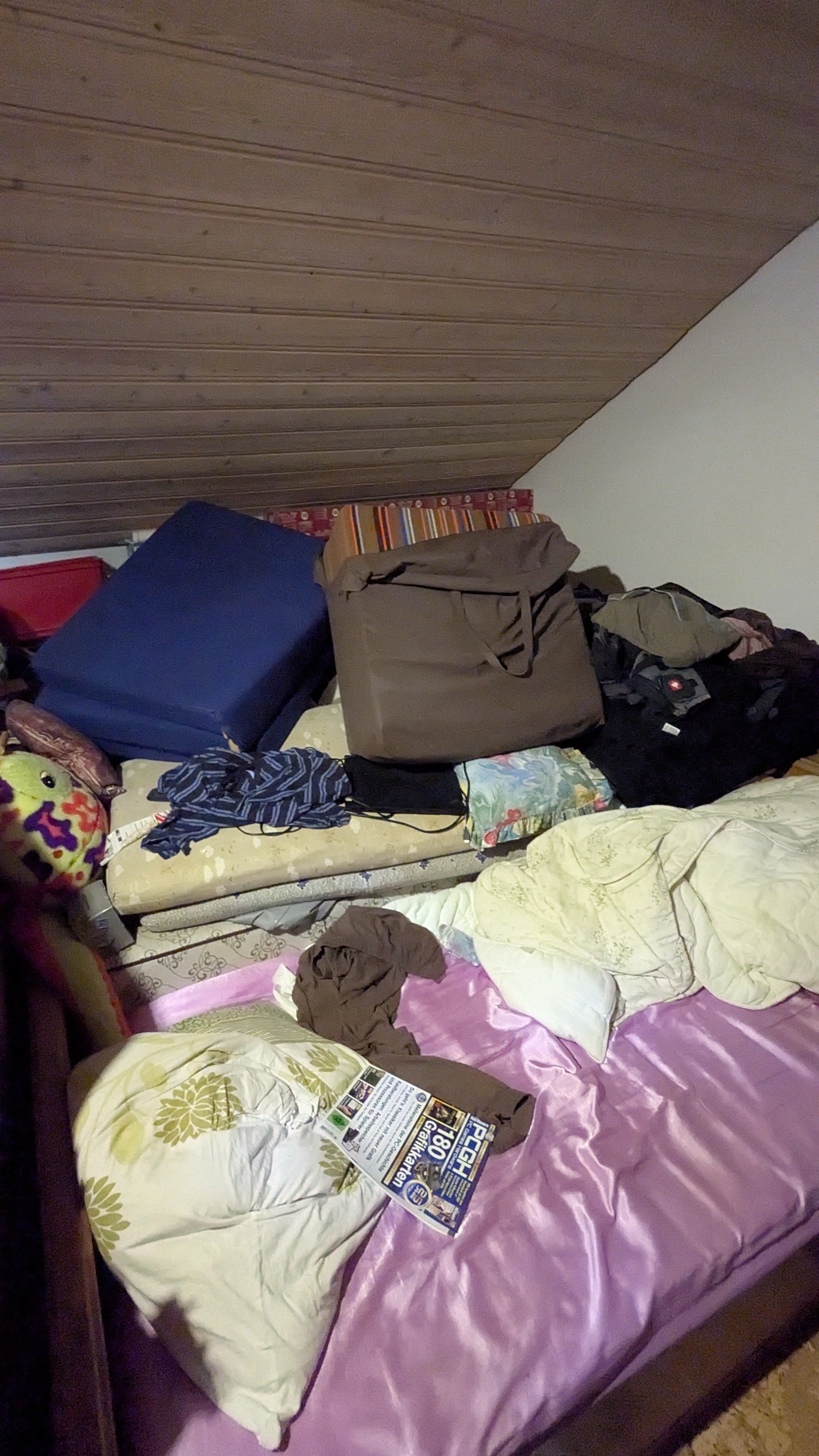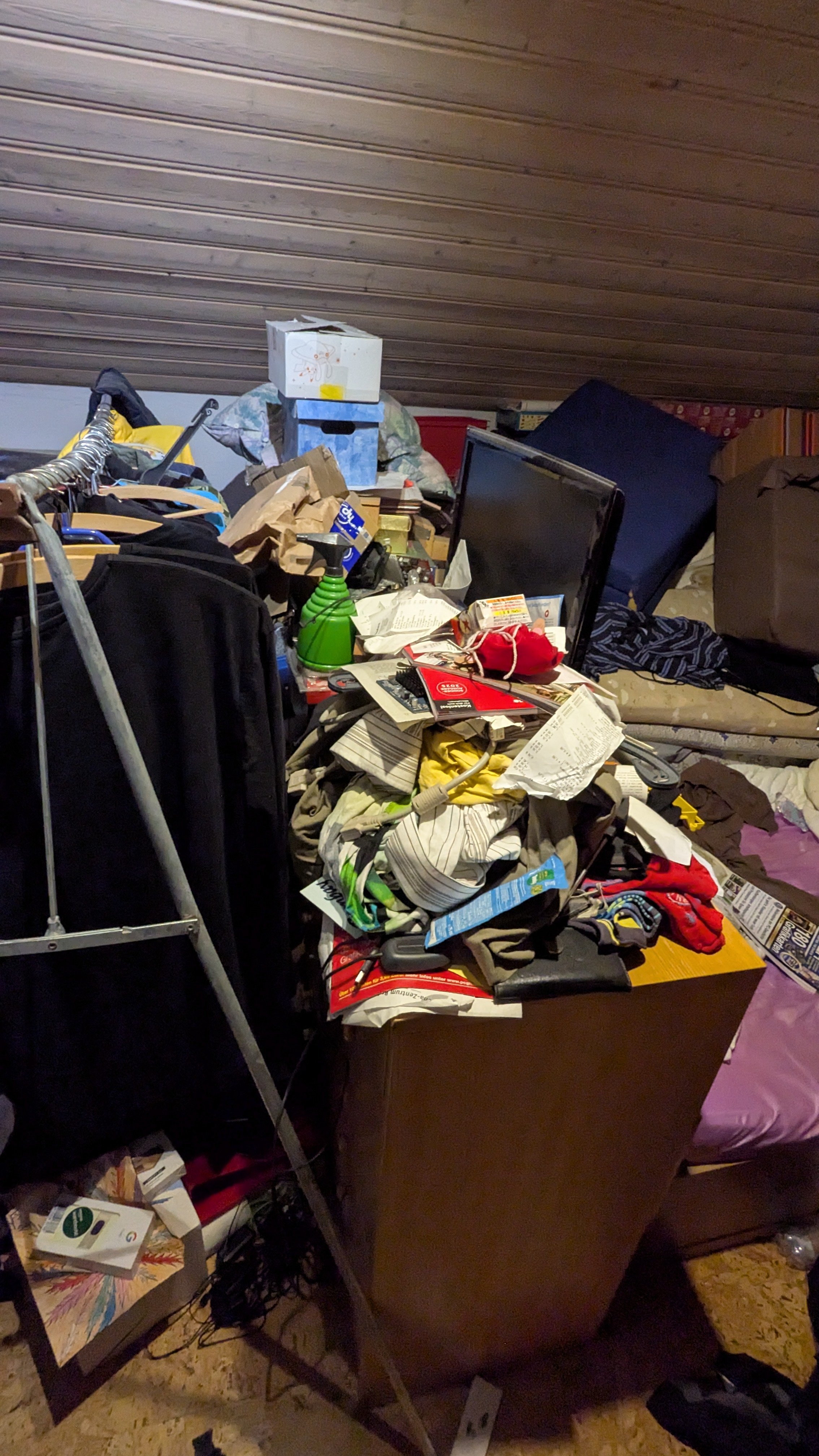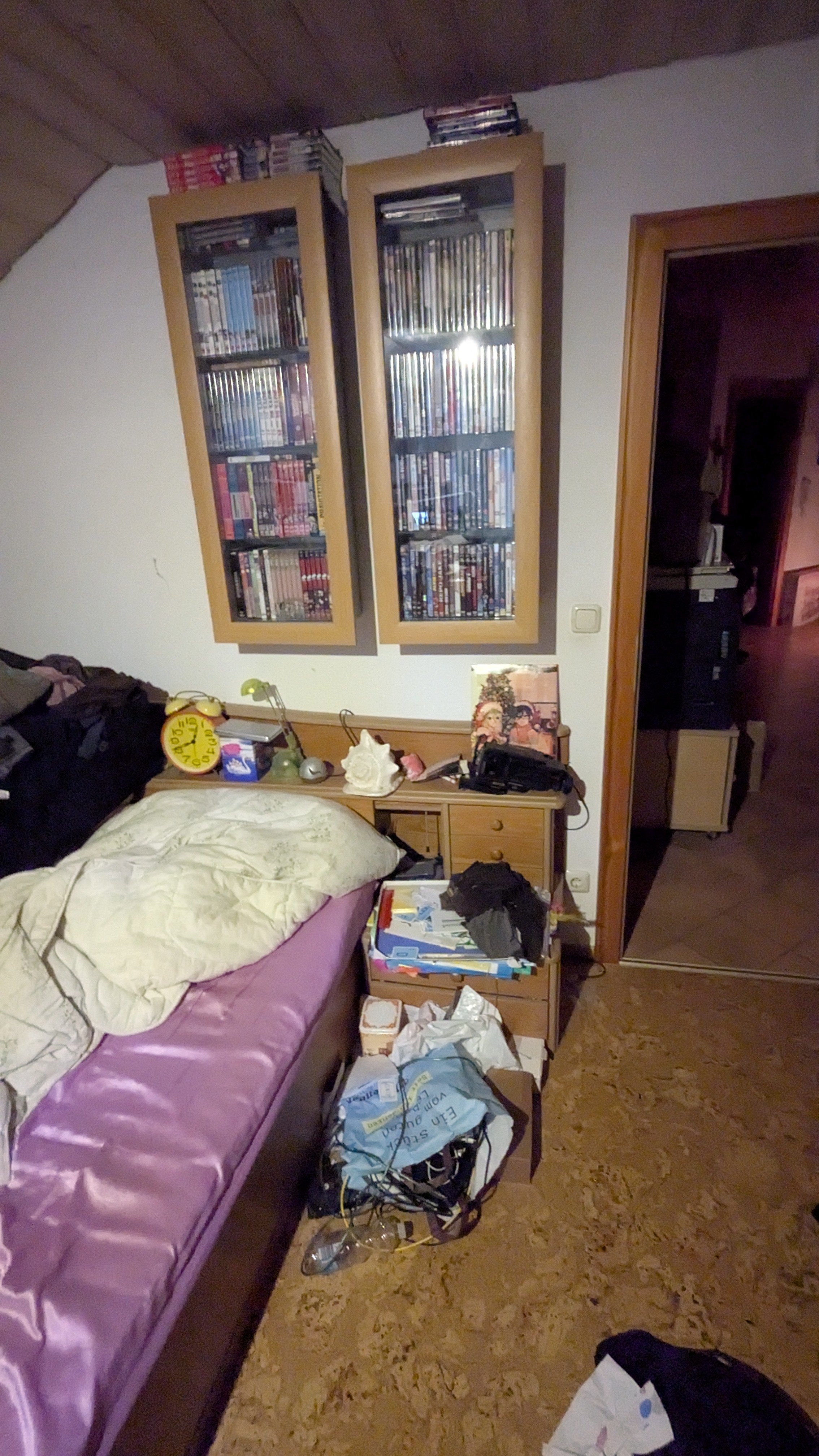 Der ganze Speicher ist also eine Zumutung.Meine Mutter kommt nicht mehr hoch.Der Keller hat Feutigkeits Probleme da mieft es immer so.Da stelle ich ganz sicher nix hin.Der Keller hat sich seid dem tod meines Vaters 2021 nix mehr geändert.Da ist auch vieles wo man entsorgen kann.Ich vermisse da nix unten.