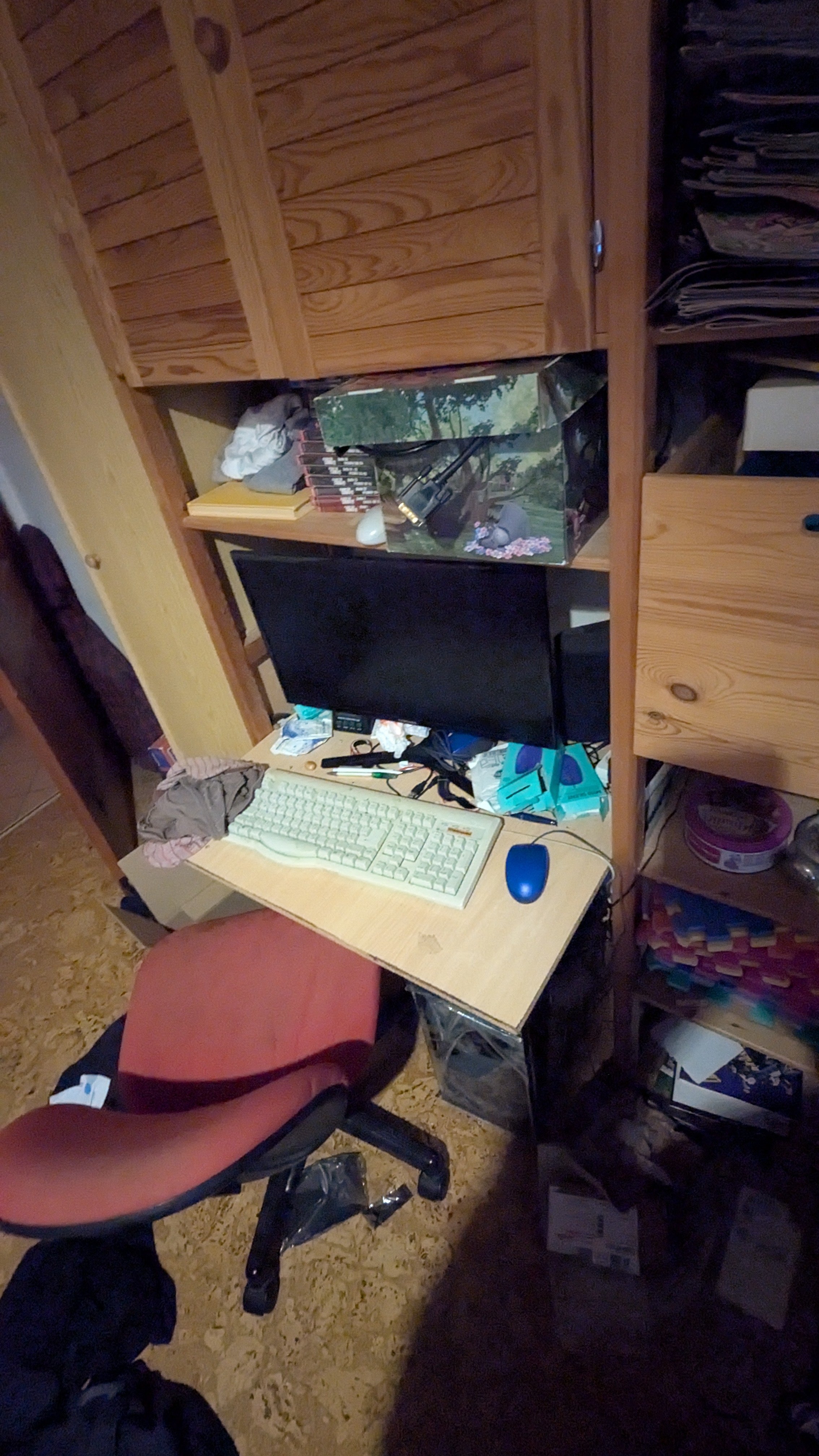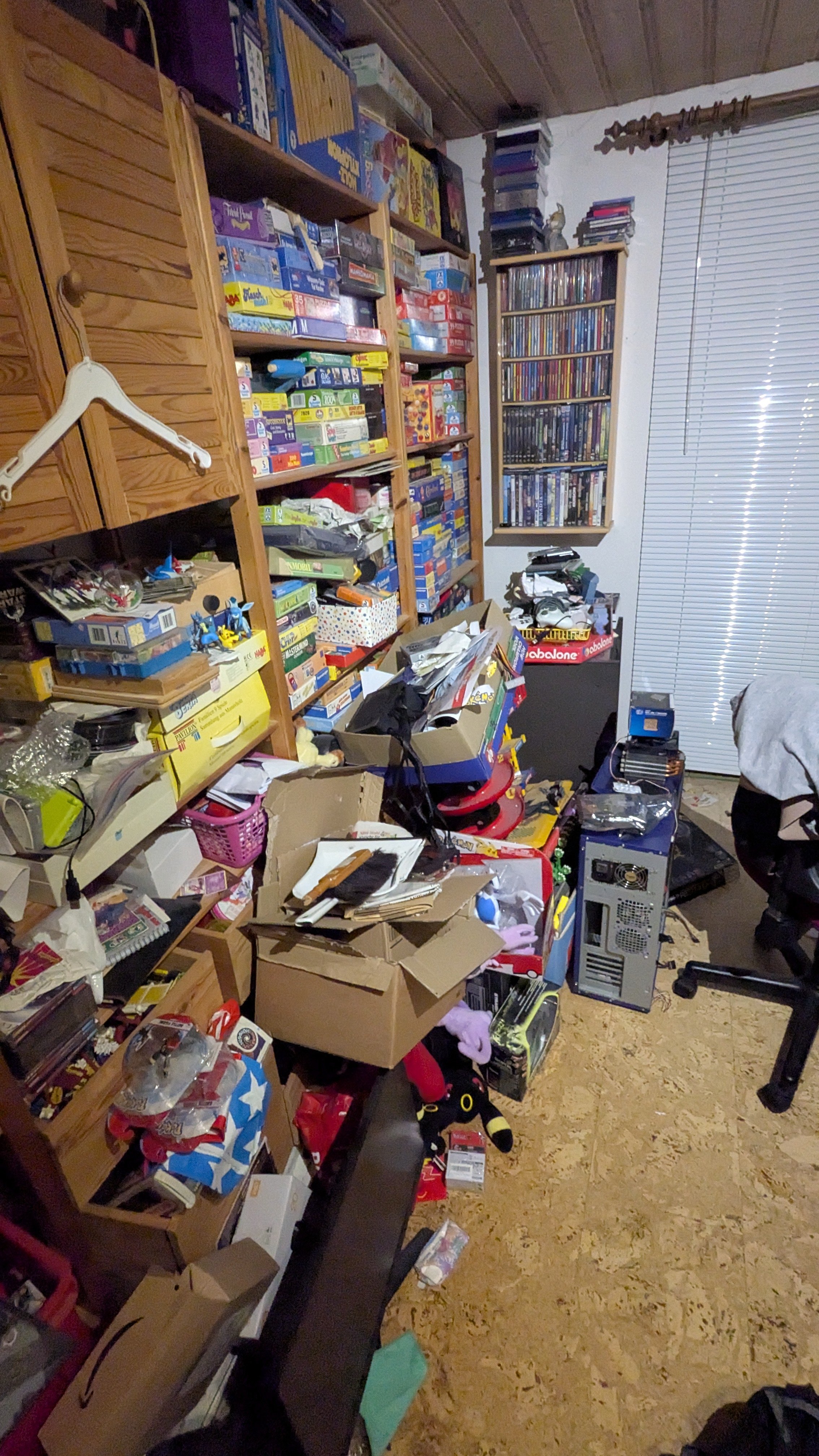 Wenn man das so sieht, dann ist man irgendwie traurig. Ändert auch nichts daran, dass du dir deine PC Ecke sauber herrichten könntest. Das wäre der erste Schritt. Du könntest auch Tabula Rasa machen und größenteils alle alten Filme/CDs/DVDs, Spiele und Co wegwerfen, und vorher eine Liste erstellen welche Spiele unbedingt gespielt werden sollen und diese dann über GoG für wenig Geld kaufen.
