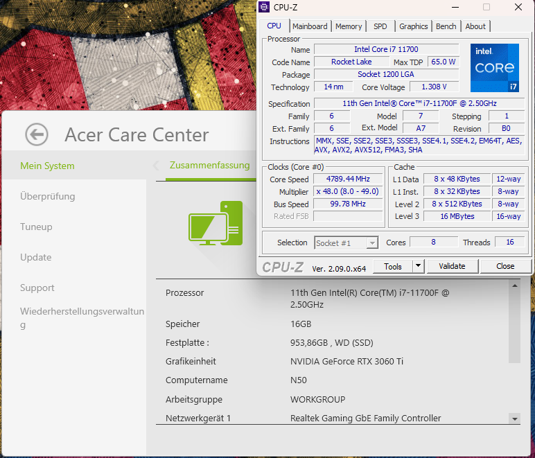 Zu den Specs die vorhanden wären schicke ich auch Screenshots rein :
