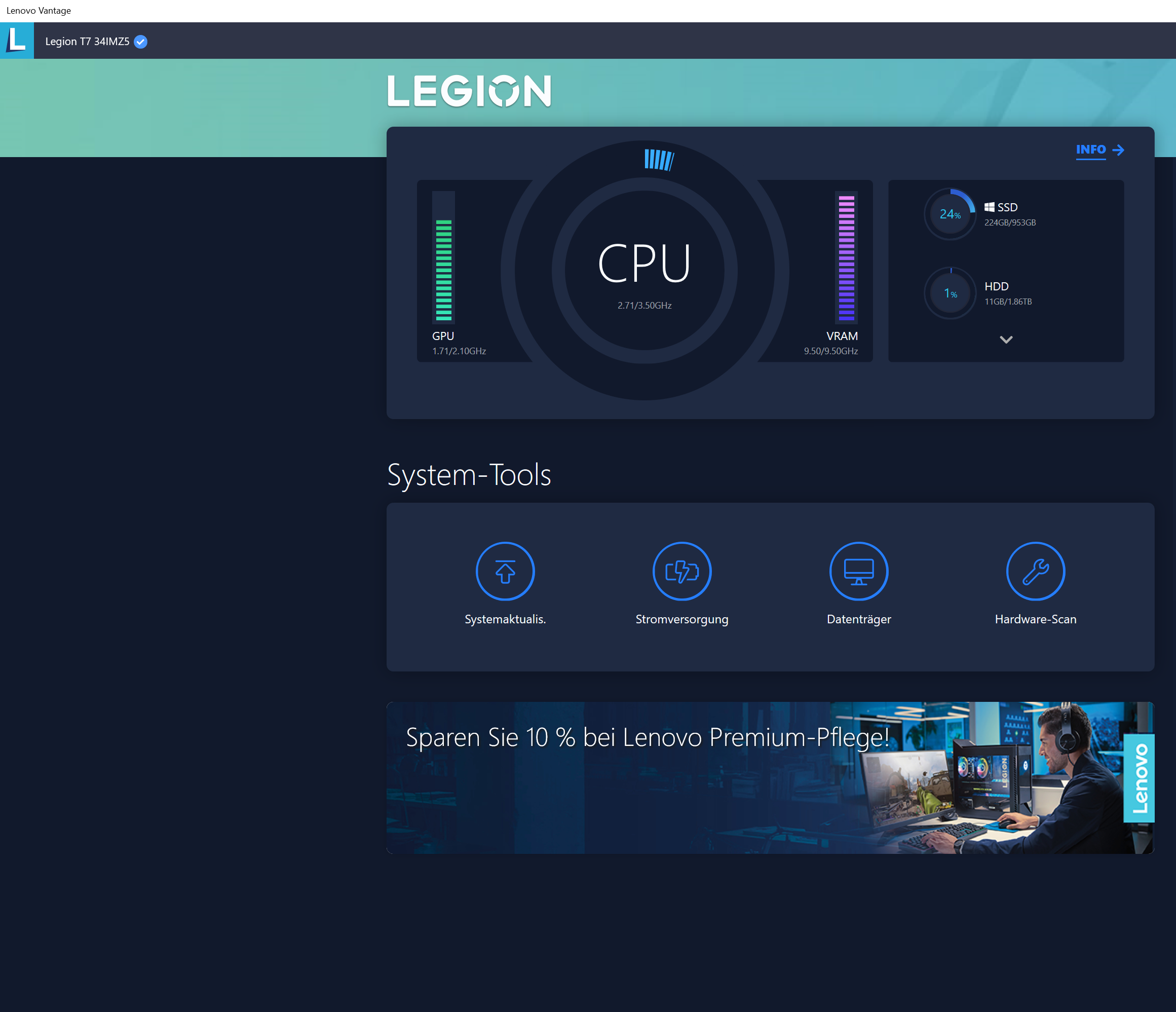 Das einzige war mir aufgefallen ist, dass in letzter Zeit im Lenovo Vantage Programm angezeigt wird, dass beim VRAM anscheinend alle 9,5 Ghz genutzt werden, auch wenn halt wie oben schon beschrieben lediglich Google Chrome läuft. Das Programm scheint mir aber generell teilweise etwas buggy zu sein, weshalb ich dem jetzt nicht direkt so zu 100 Prozent traue (und da der Hardware Scan der selben Software beim Scan des VRAMs keine Probleme meldet).
