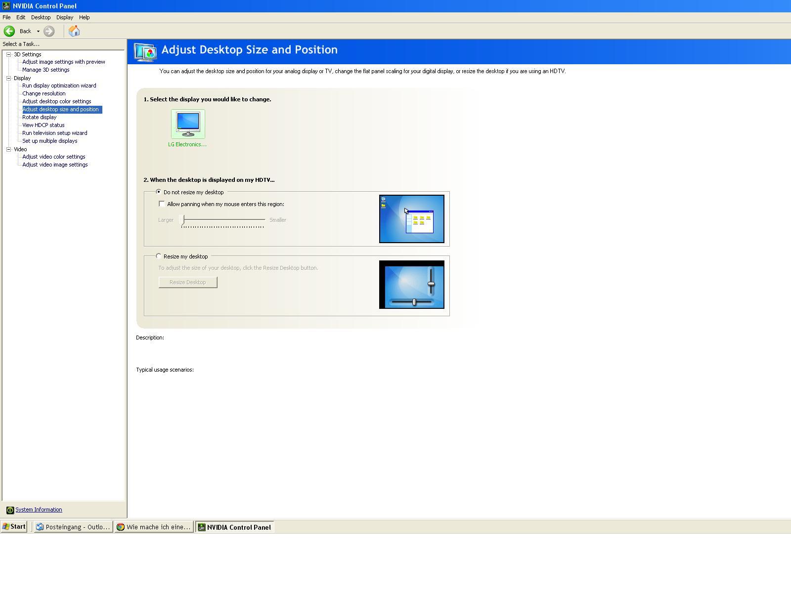 Ich habe mal einen screenshot gemacht - wie man sehen kann, fehlen die Skalierungsoptionen völlig. Ich habe auch den neuen Beta-Treiber 275.27 ausprobiert - keine Änderung.