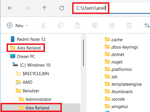 So dass ich also unter C:\Benutzer\ wirklich nur den einen Benutzernamen (plus Öffentlich) stehen habe, so wie ich ihn