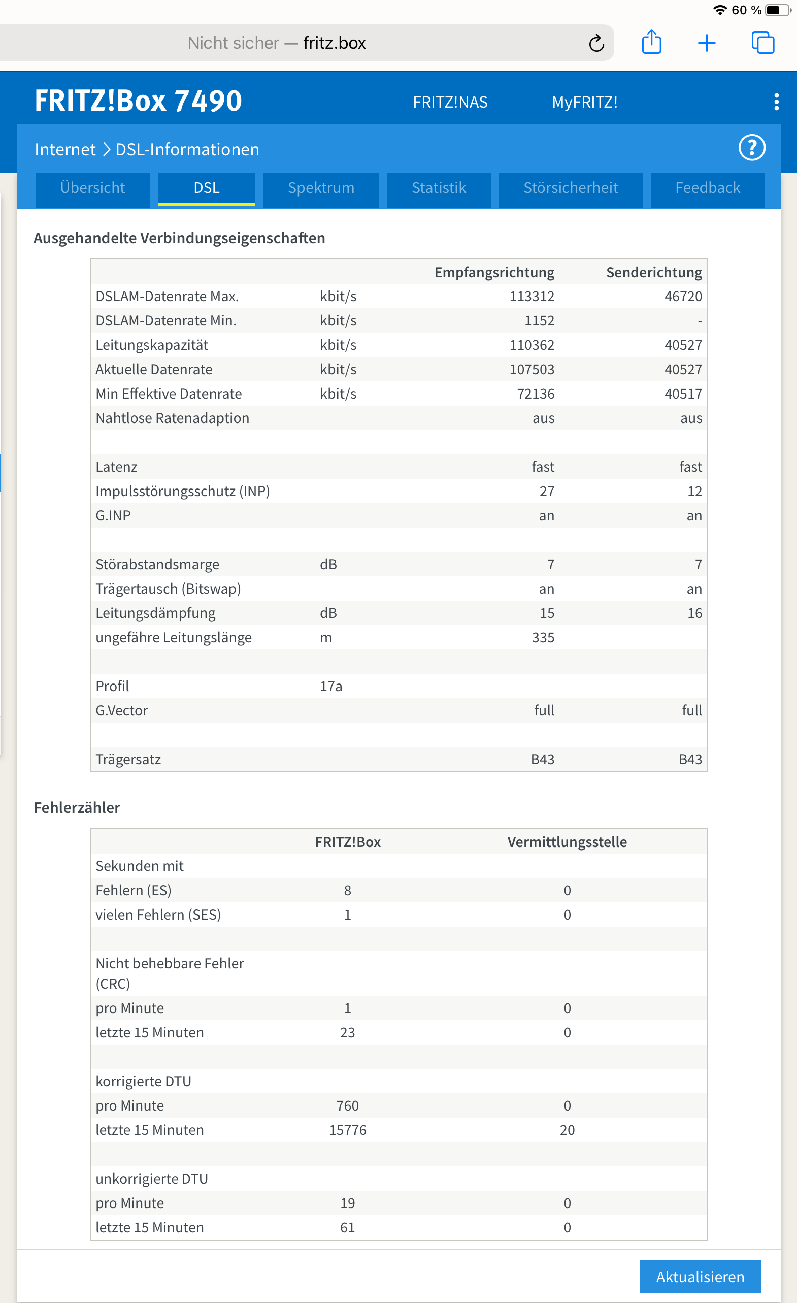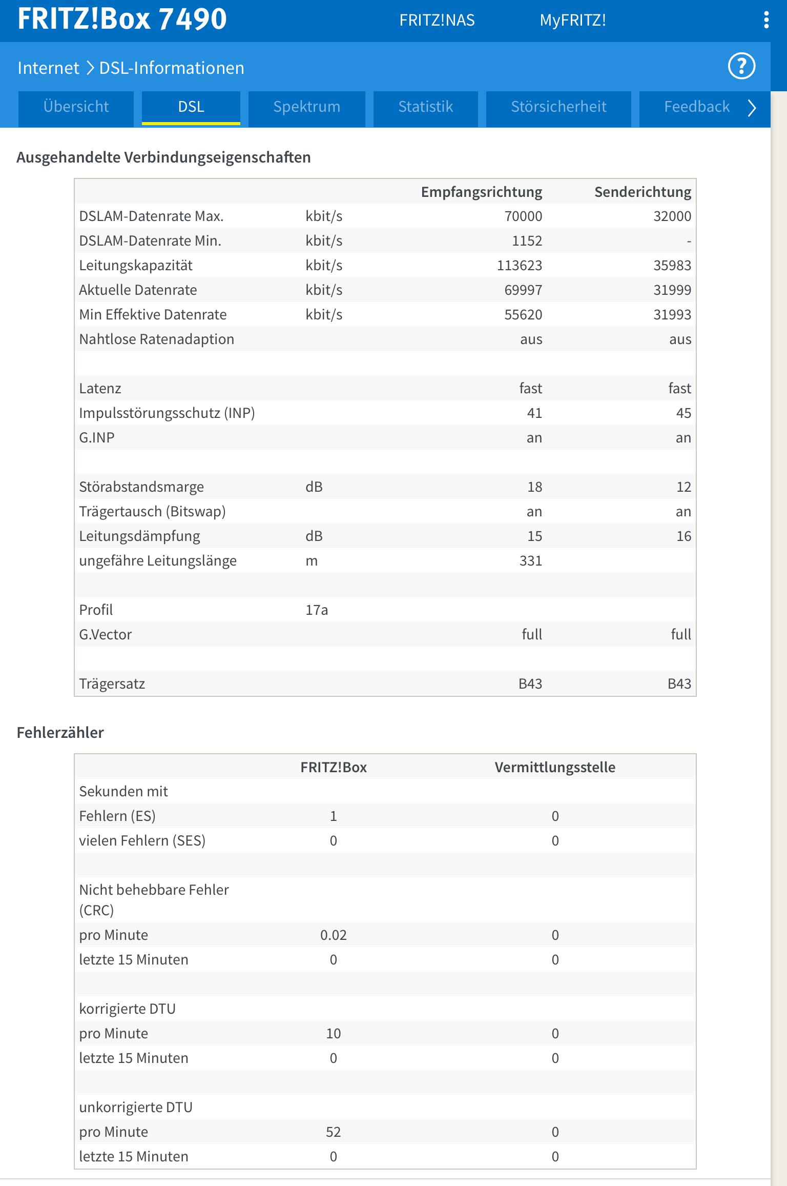 Die Fritz-Box meldet mir (DSL antwortet nicht).