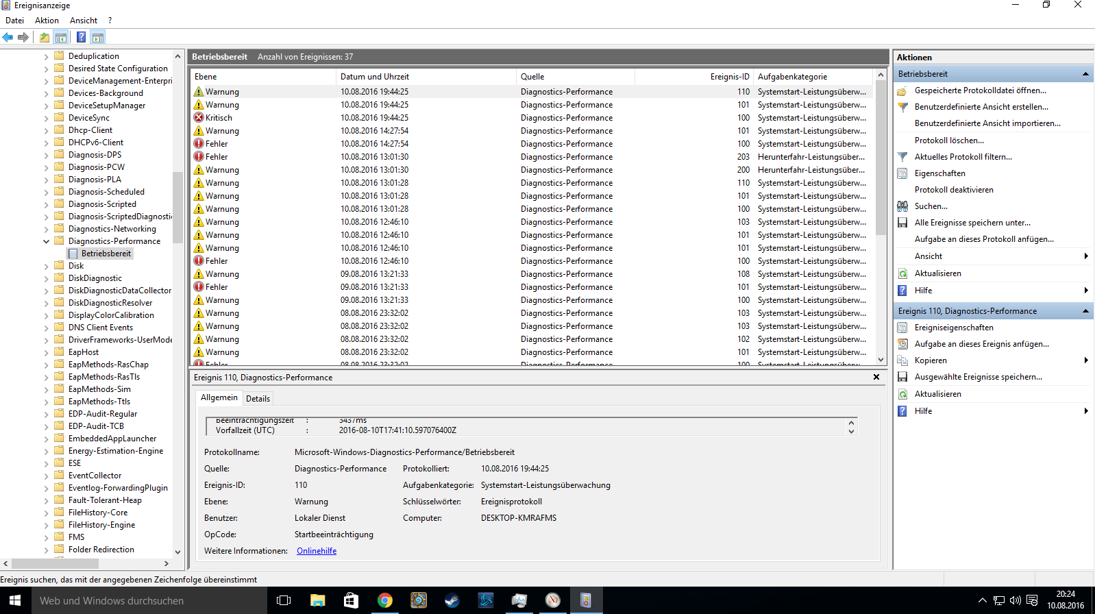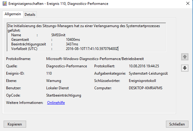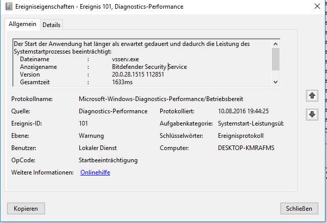 Bei Ereignis ID 100 gibt es das hier :