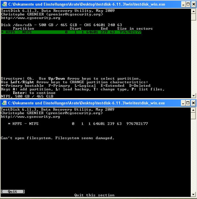 Nun versuche ich meine wichtigen Daten zu retten und habe auf diese Festplatte noch nichts drauf geschrieben, alles ist nach dem schnell Formatieren unangerühert geblieben.