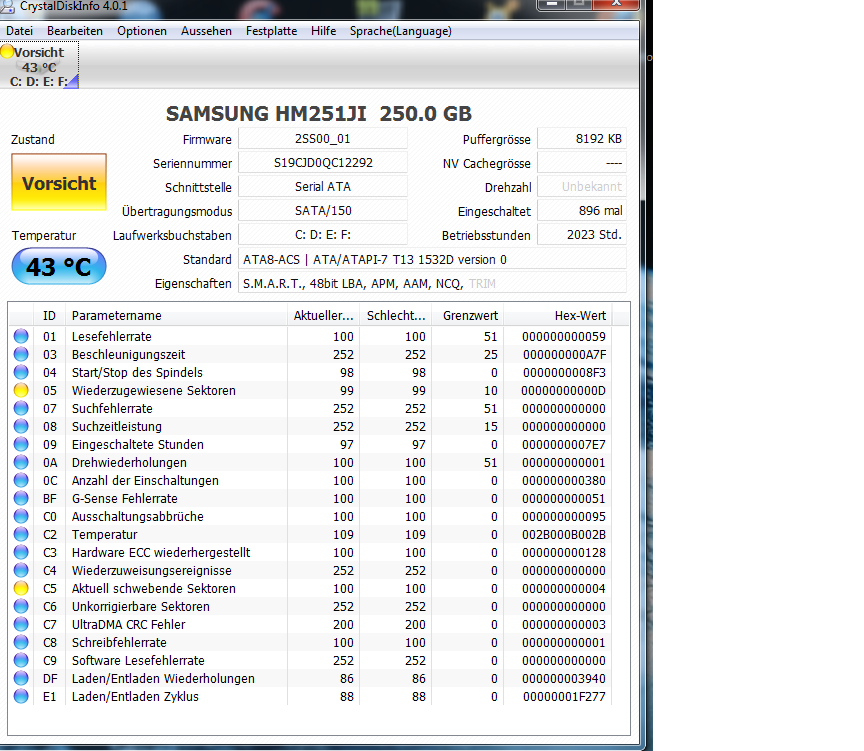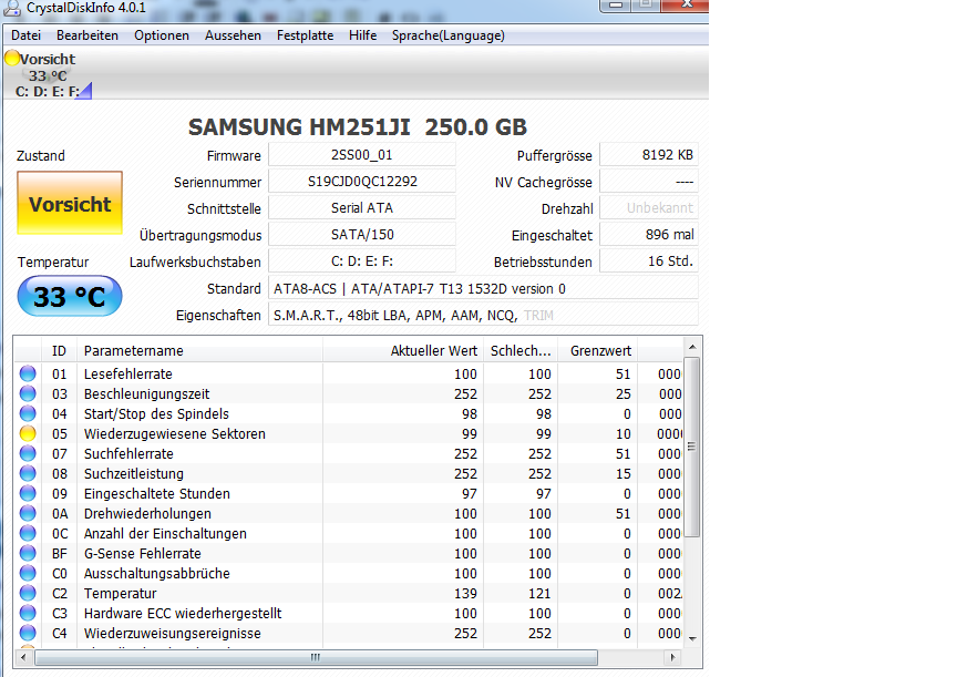 Heute habe ich mal gelesen warum der Pc einfrieren könnte und da habe ich ein nettes Programm gefunden was mir ein paar Daten über die festplatte gibt. CrystalDIscInfo