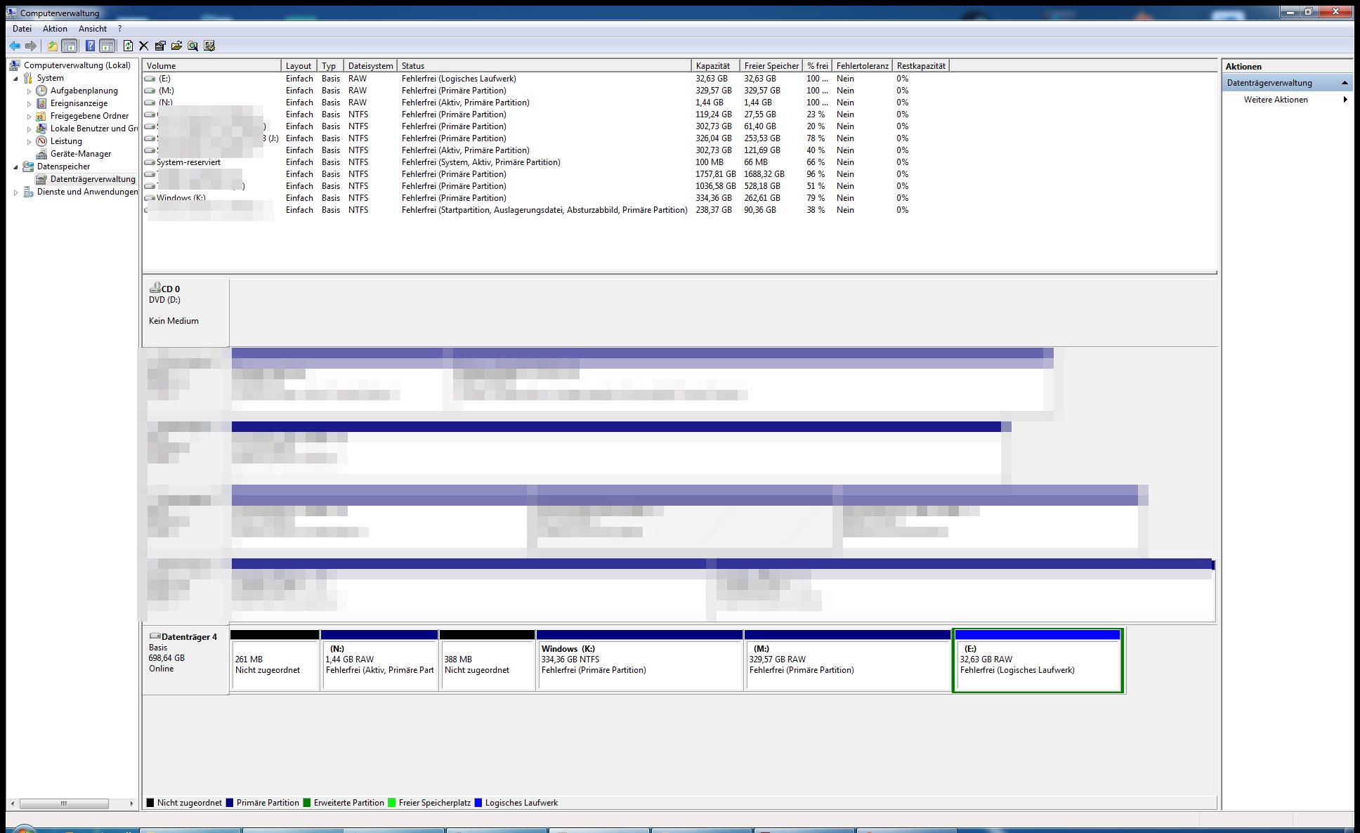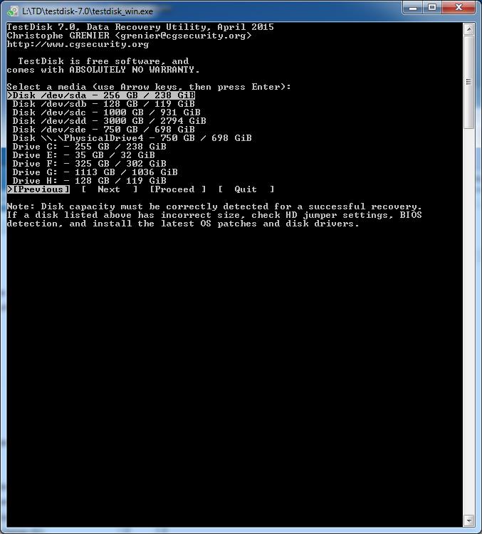 Nun folgt mein erster offensichtlicher Fehler: Die HDD wurde nicht eingelesen und nicht angezeigt. Datenträgerverwaltung geöffnet, die mir sogleich erklärte ich müsste die Platte initialisieren. Ich habe mich hier für MBR entschieden. Hat nichts genutzt, die Platte wurde nun als eine große, nicht formatierte HDD angezeigt. Daraufhin habe ich mit Testdisk versucht die Partitionen wiederherzustellen. Diese wurden auch gefunden und grün angezeigt, aber TestDisk hat mehrere Probleme gemeldet: