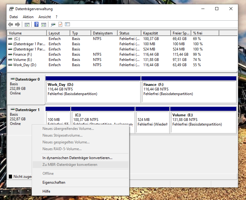 Ich schau mal und setzte es dann reinPonderosa schrieb:Zeig doch erst mal den gewünschten Screenshot der Datenträgerverwaltung.