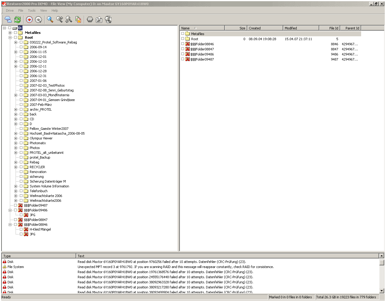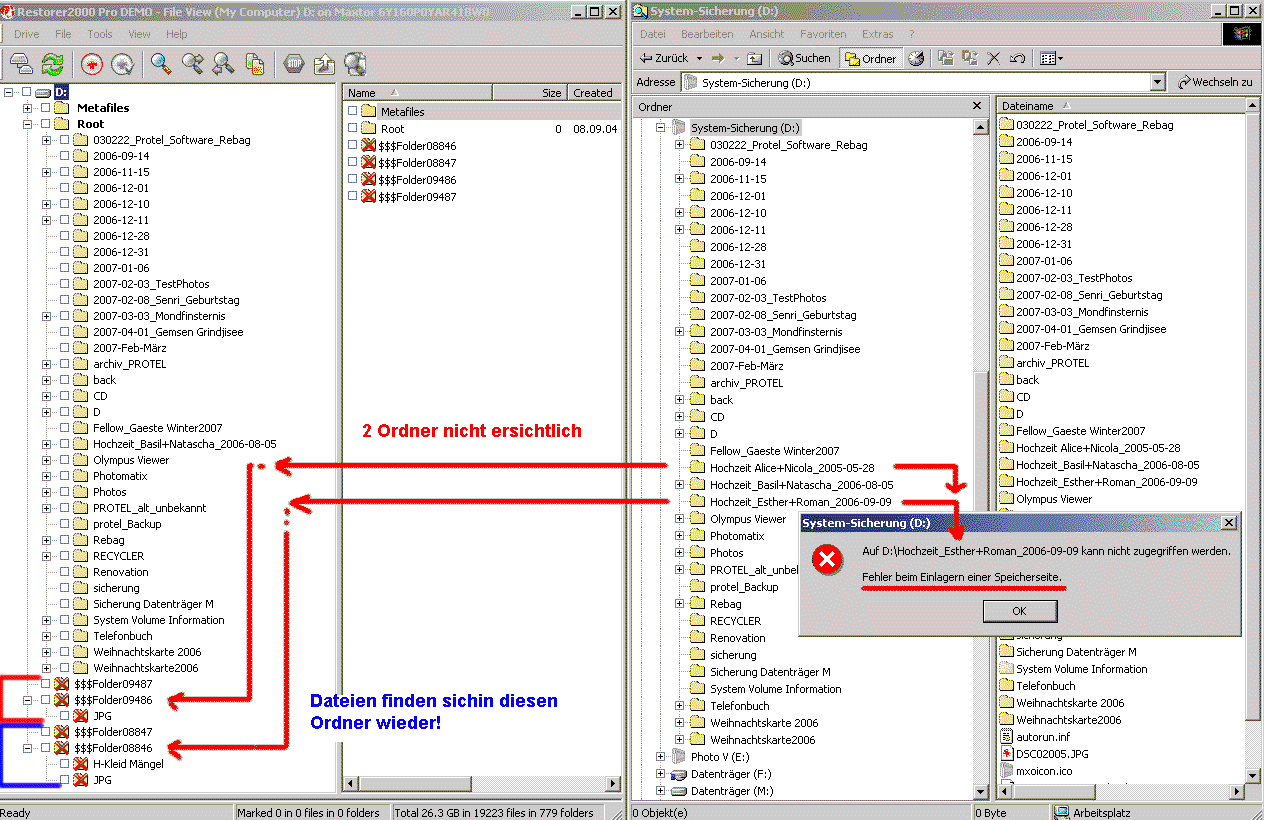 Deine Testdisk.log zeigte auch auf Fehler bei Dateien und waren mehrere.