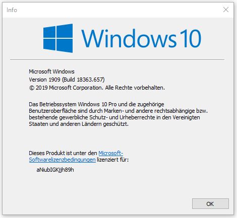 ich habe sofort die festplatte abgeklemmt und eine ältere win 10 version geklont 1903 (build 18362.449)