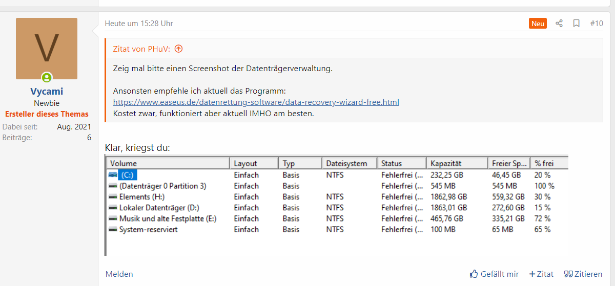 Recover it lief die letzte Nacht und fand zumindest den Fotoordner wieder, das Programm ist jedoch nur zum suchen kostenlos und muss ansonsten kostenpflichtig erworben werden. Das wäre es mir jedoch wert, wenn ich damit Erfolg hätte. Hat jemand Erfahrung damit? Bei Google konnte ich nichts so richtig vertrauenserweckendes finden.