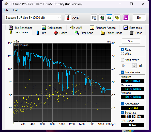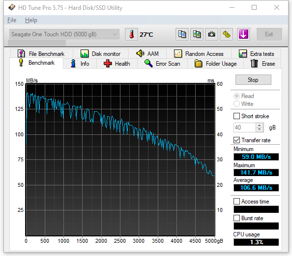 Ich habe mir eine neue externe Festplatte gekauft und wollte sie, wie ich es immer mit neuen Platten mache, ausgiebig mit HD Tune testen.