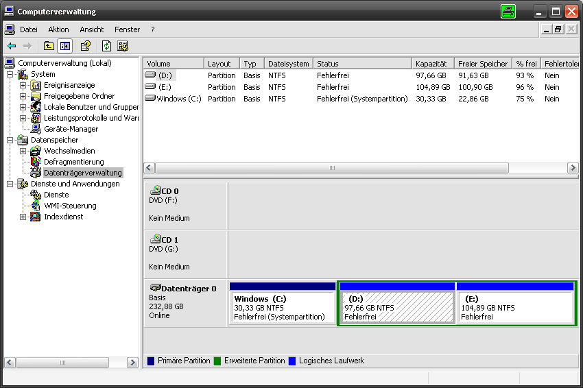 Ps. die Platte im Screenshot Computerverwaltung ist die neue Platte !