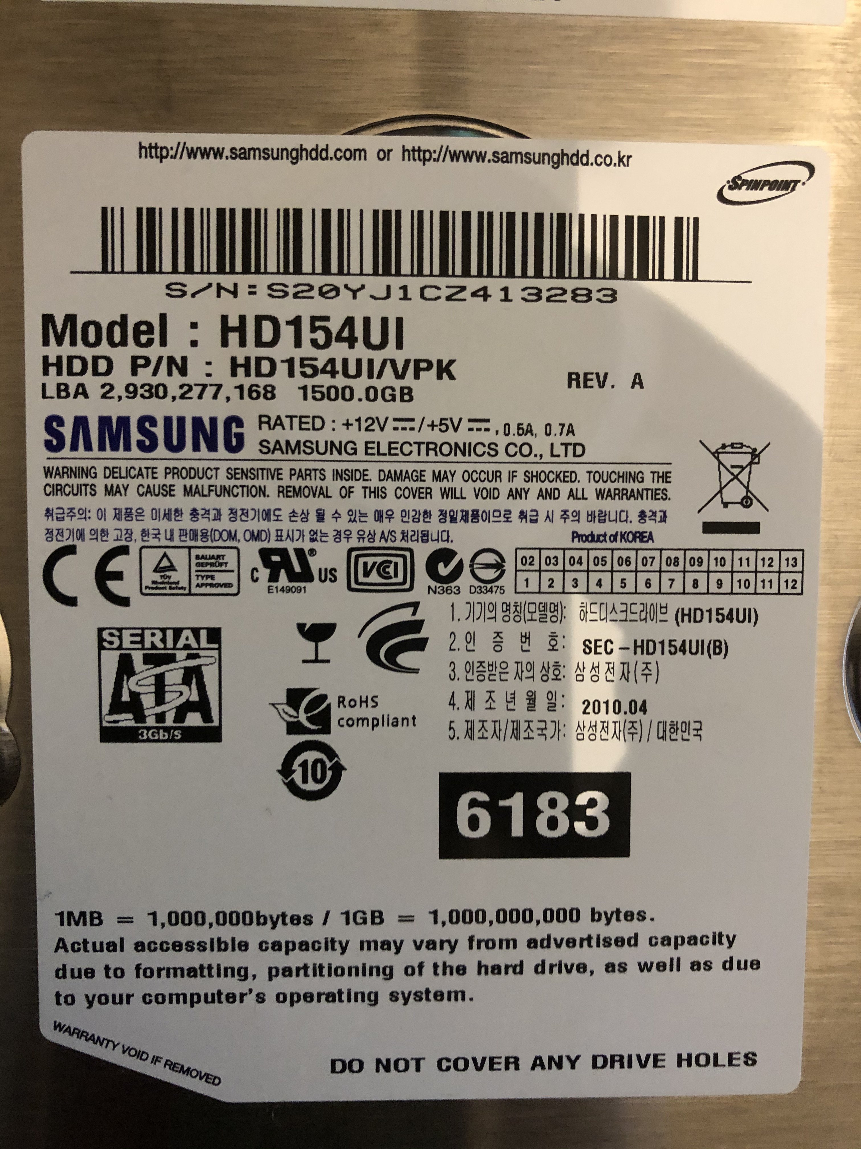Bei meiner externen handelt es sich um eine Samsung G3 Station 3,5" mit 1,5 TB.