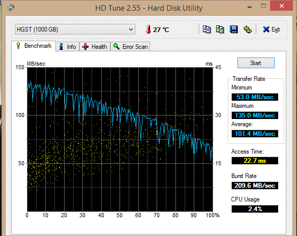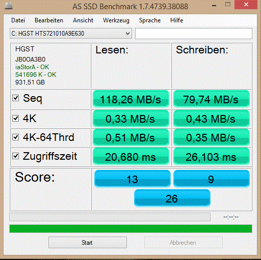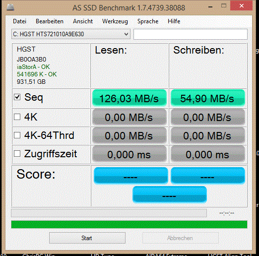 mein PC steht in der Signatur. Ich habe nachdem meine alte Festplatte nicht mehr ok eine neue Festplatte gekauft. Diese habe ich in meinen PC eingebaut und Windows 8.1 frisch installiert. Die Installation von Windows 8.1 hat schon ewig gebraucht bis die Daten auf der Festplatte geschrieben wurden. Leider arbeitet die Festplatte extrem langsam. Das macht sich nicht nur bei Ladezeiten bemerkbar sondern ein einfacher Rechtsklick auf den Desktop braucht Minuten bis sich das Menü öffnet. Sobald irgendwas auf die Festplatte zugreift reagiert das ganze System nicht mehr.