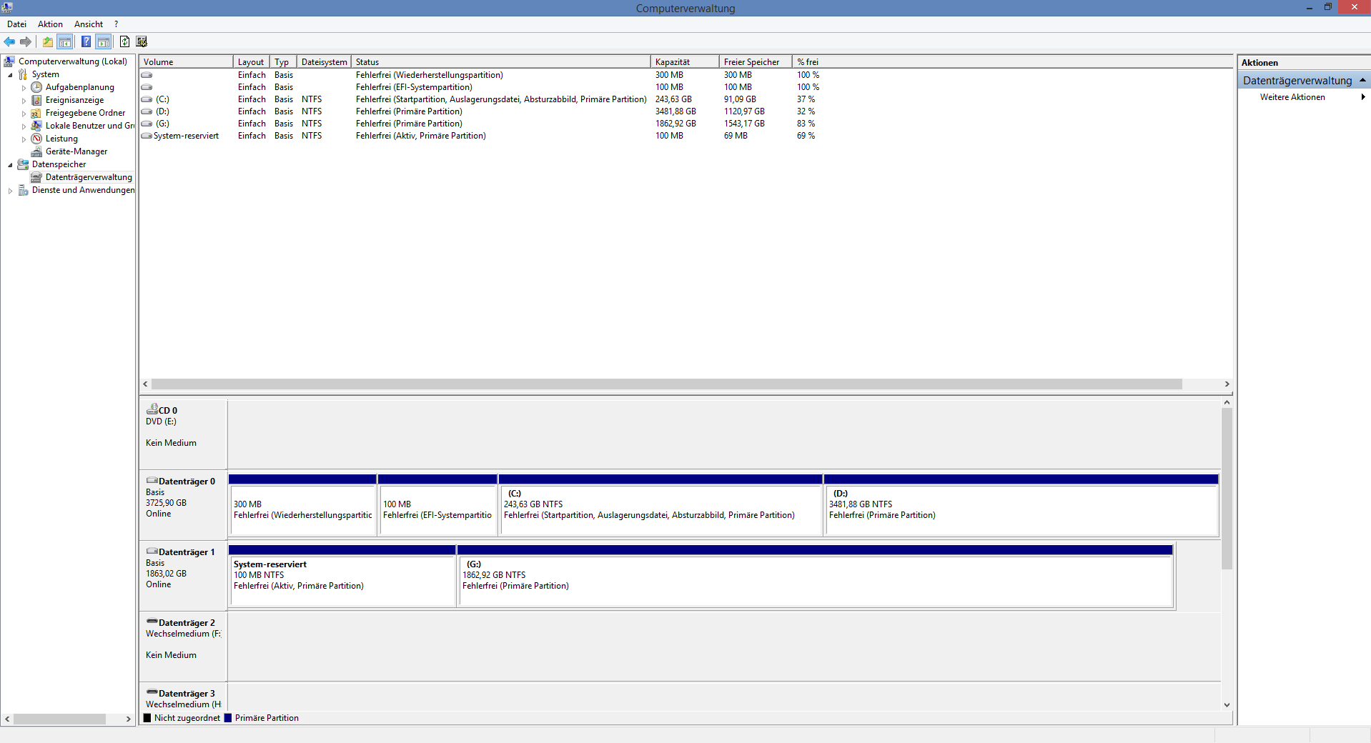 Nun ist die Frage wie ich das jetzt am besten löse. Die erste Festplatte habe ich mit dem PC bekommen, ist also nun auch schon ihre 4 Jahre alt (in den Screenshots ist es die Festplatte "G:"). Der Zustand ist zumindest lt. Software immer noch "gut" - also wäre das mal nichts akutes.