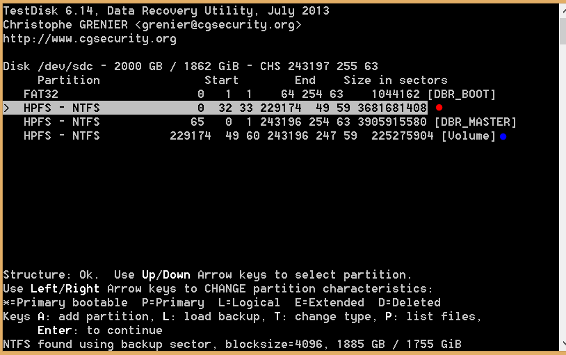 Bei TestDisk: Quick Search wurden nur die 2 von Dell erstellten Partitionen gefunden. Die Deep Search habe ich vorerst abgebrochen, da bei 2TB diese anscheinend 5h dauert und ich heute nicht mehr so viel Zeit habe. (Ich nehme an, mit der Deep Search werde ich trotzdem noch die besten Chancen haben, oder?).
