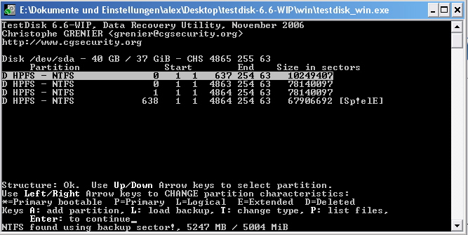 Lade dir wenn es so ist für eine Überprüfung Testdisk Version 6.6 beta für Windows.