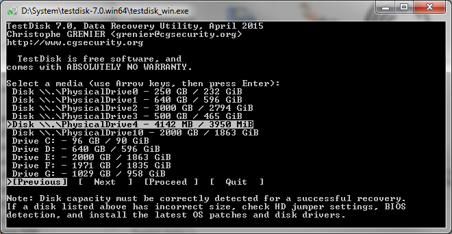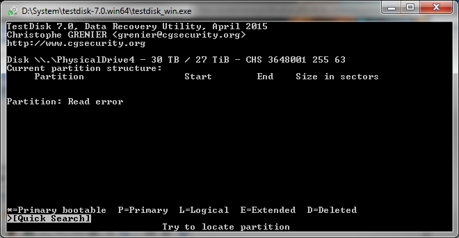 Testdisk -> Lesefehler bei der Analyse, falsche Größe.