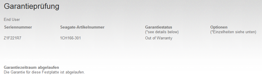 Dann hast du sie wohl in der Zeit gekauft, als Seagate die Garantie auf 2 Jahre gesenkt hatte. Kurz danach wurde sie wieder auf 3 Jahre angehoben. Dann ist deine HDD ein Fall für den Elektroschrott.