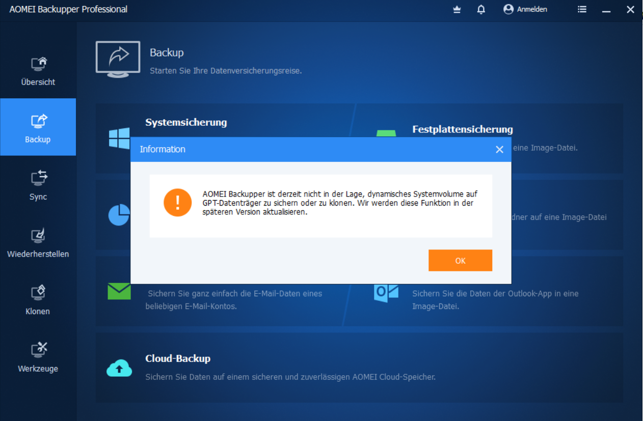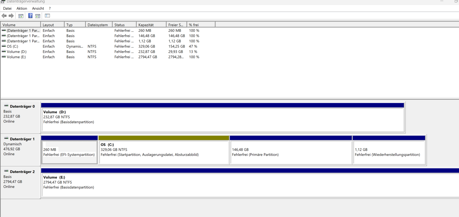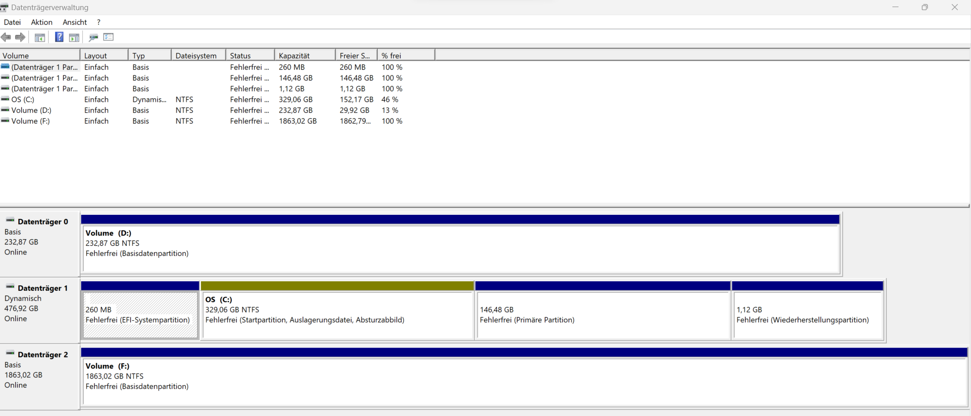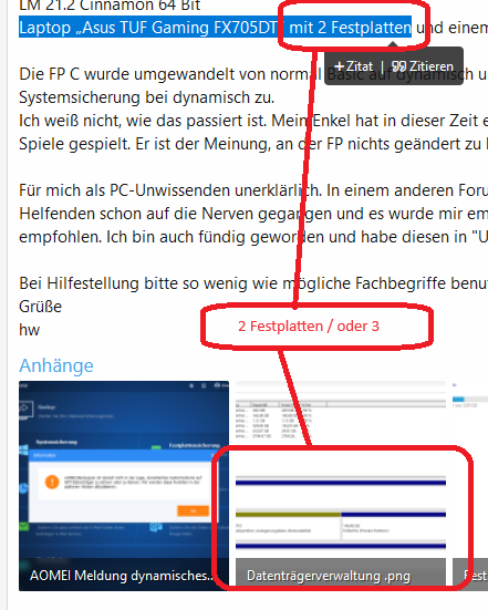 Die FP C wurde umgewandelt von normal Basic auf dynamisch und das Sicherungsprogramm AOMEI lässt so keine Systemsicherung bei dynamisch zu.